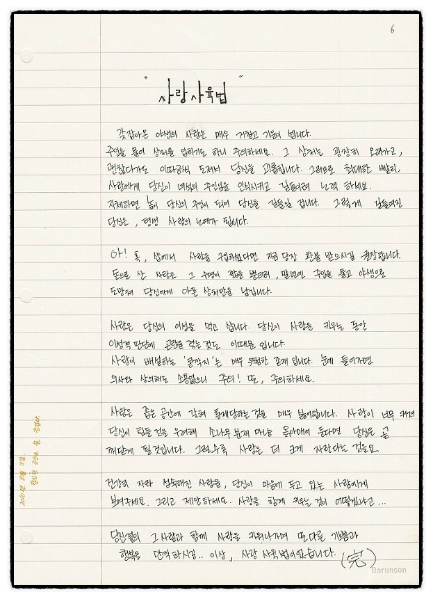당신 곁의 사람과 함께 사랑을 키워나가며 또 다른 기쁨과 행복을 만끽하시길…. 이상, 사랑 사육법이었습니다.
