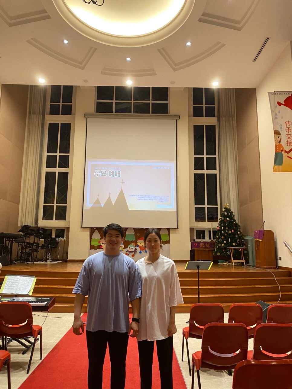 예배 전 이인한목사님께서 찍어주신 우리 부부의 사진.