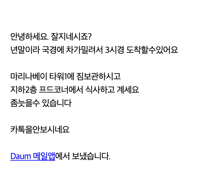밤을 꼴딱 샜을 때, 아침이 밝자 - 정말 다행히 이메일이 하나 왔다. 예약을 위해 적어드렸던 이메일로 연락이 온것이다.