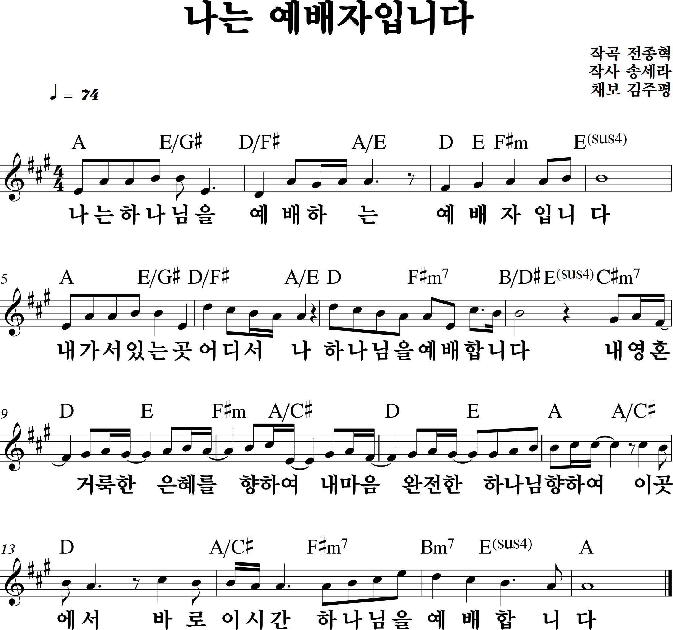 나는 예배자입니다 [E/F/G/A 키 악보]