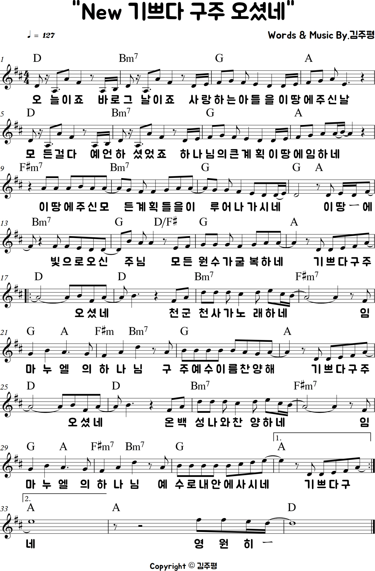 New 기쁘다 구주 오셨네 악보
