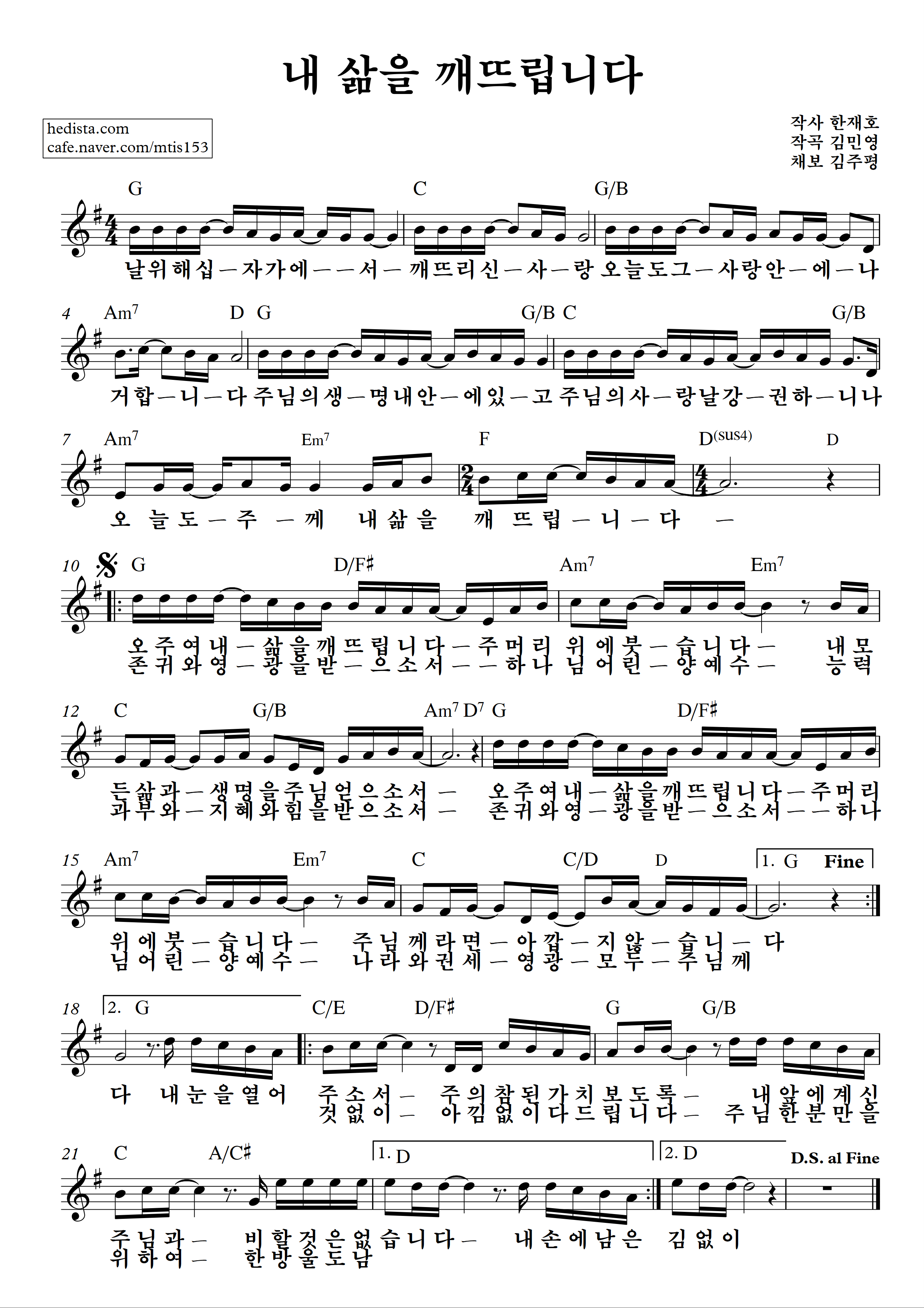 # 제가 새로이 채보하고 조옮김한 악보를 활용하여