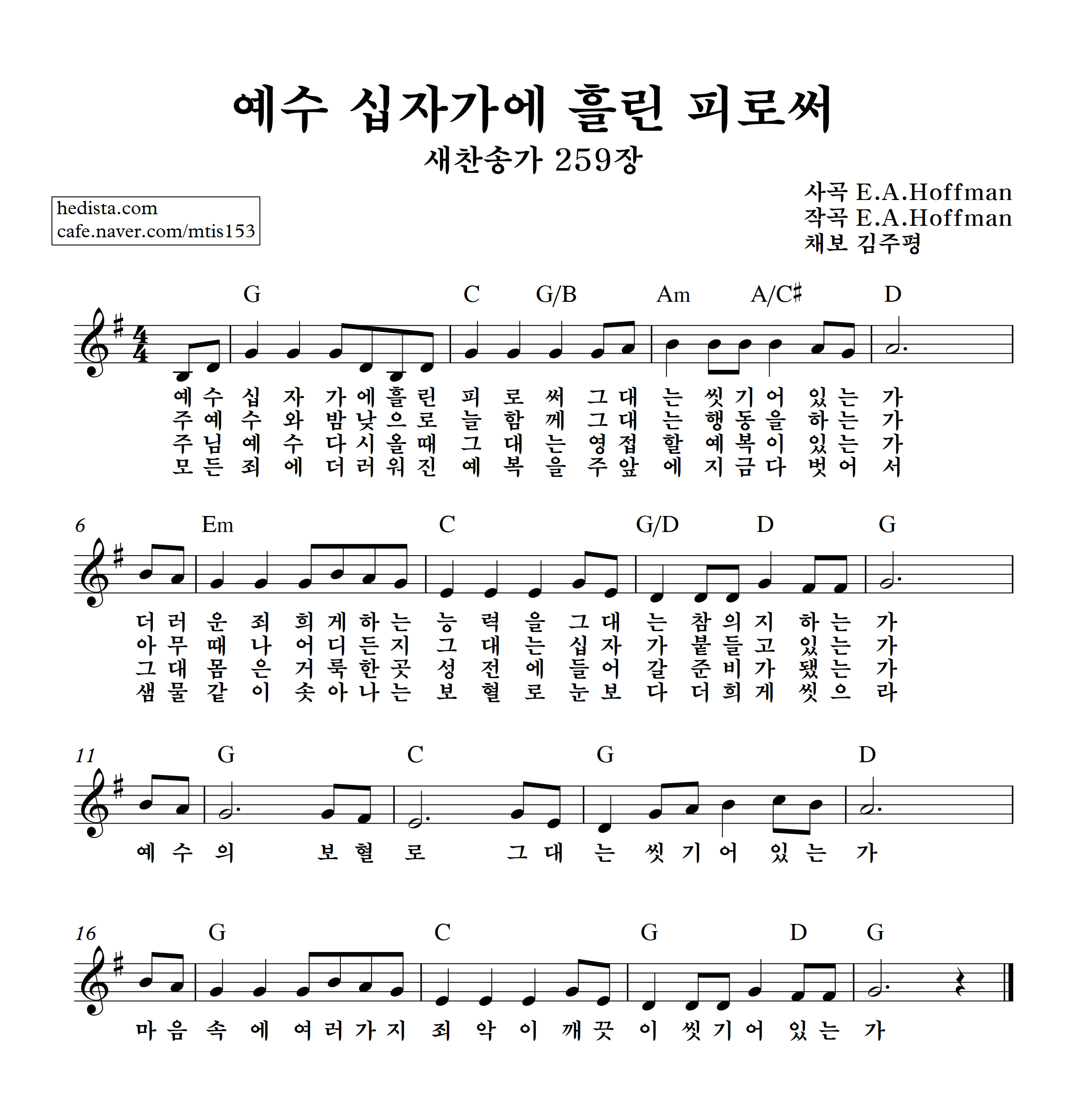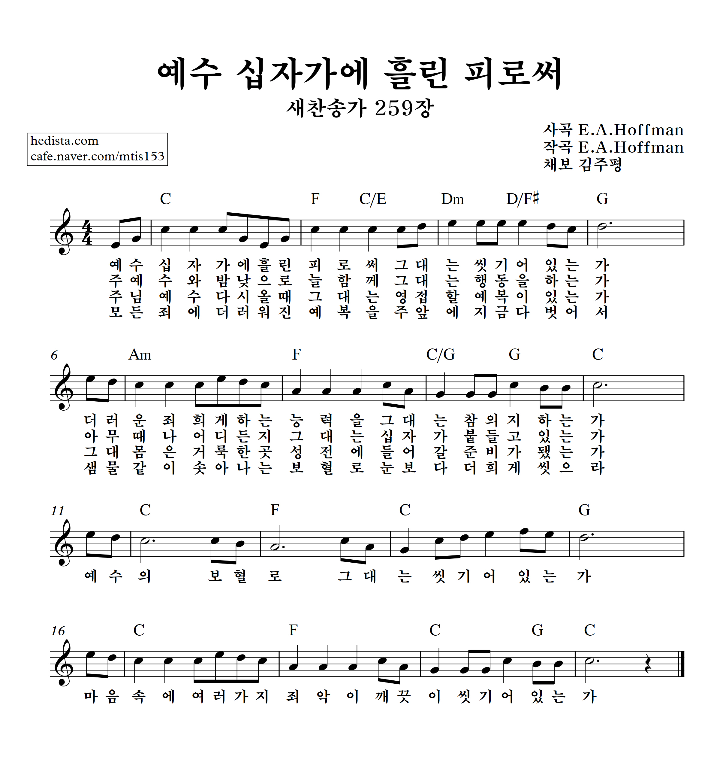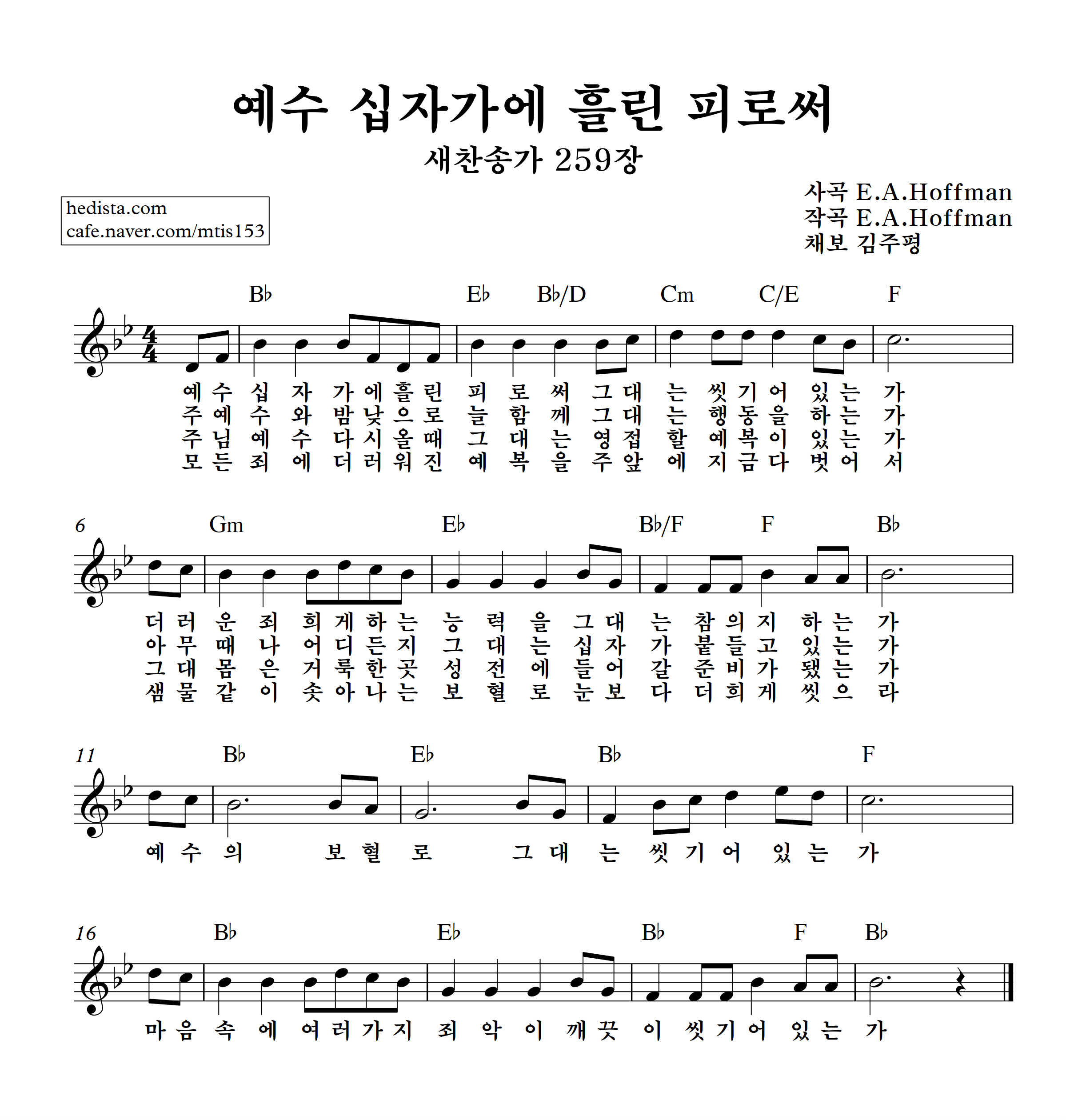 예수 십자가에 흘린 피로써를 채보했습니다.