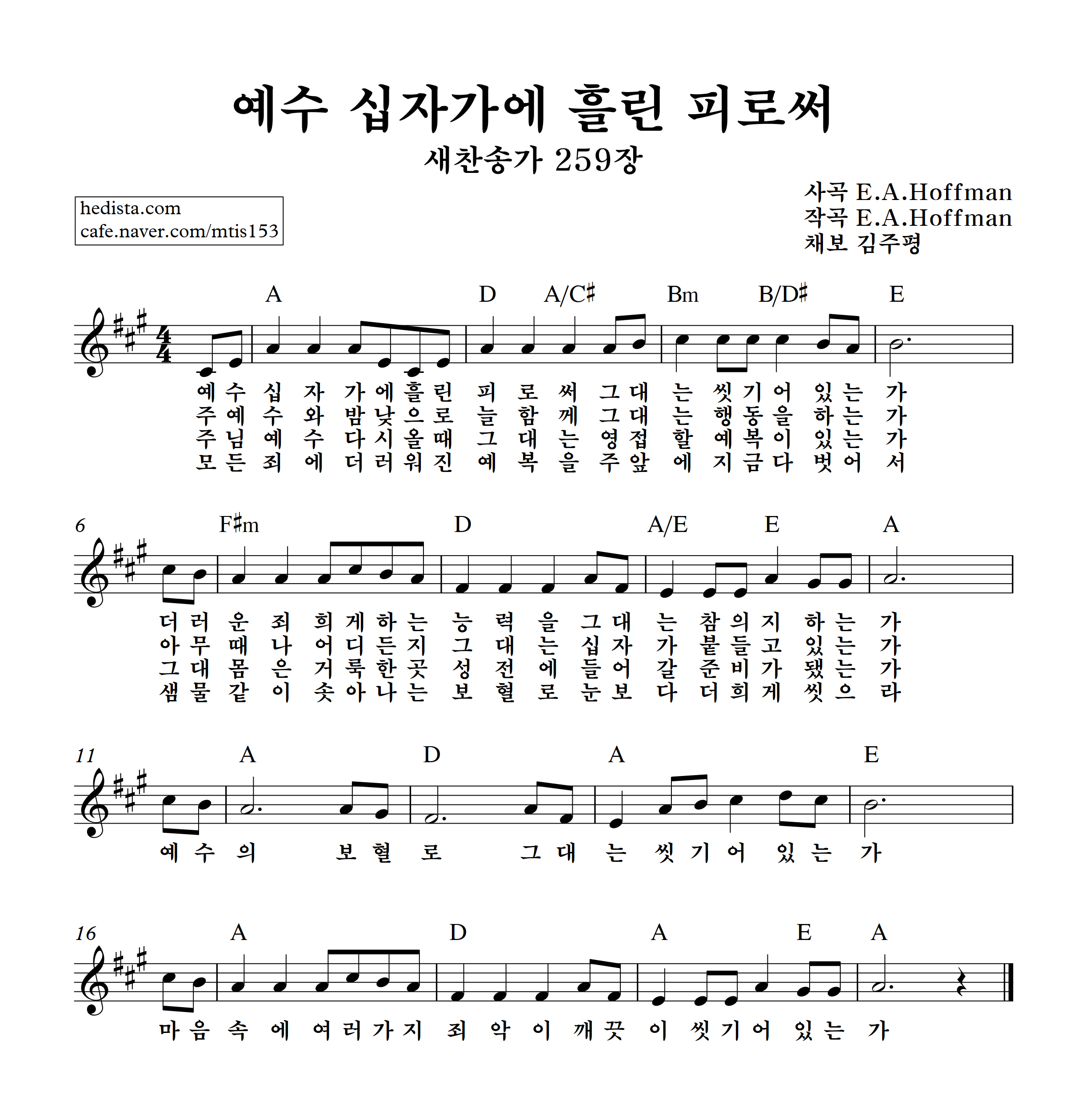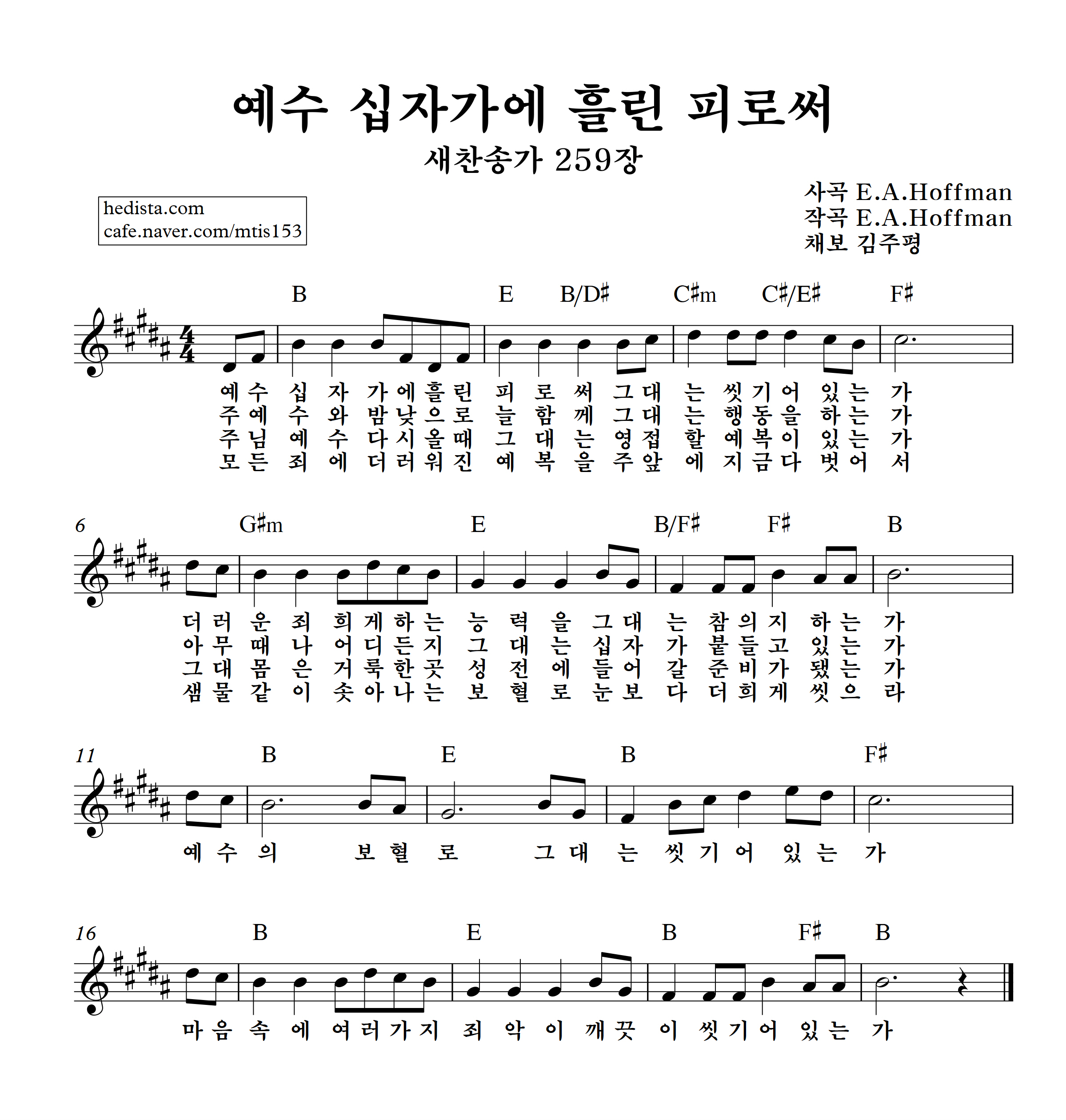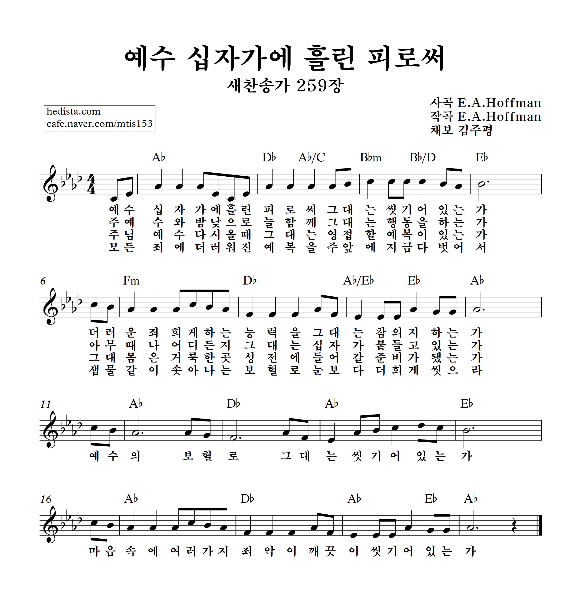 예수 십자가에 흘린 피로써를 채보했습니다.