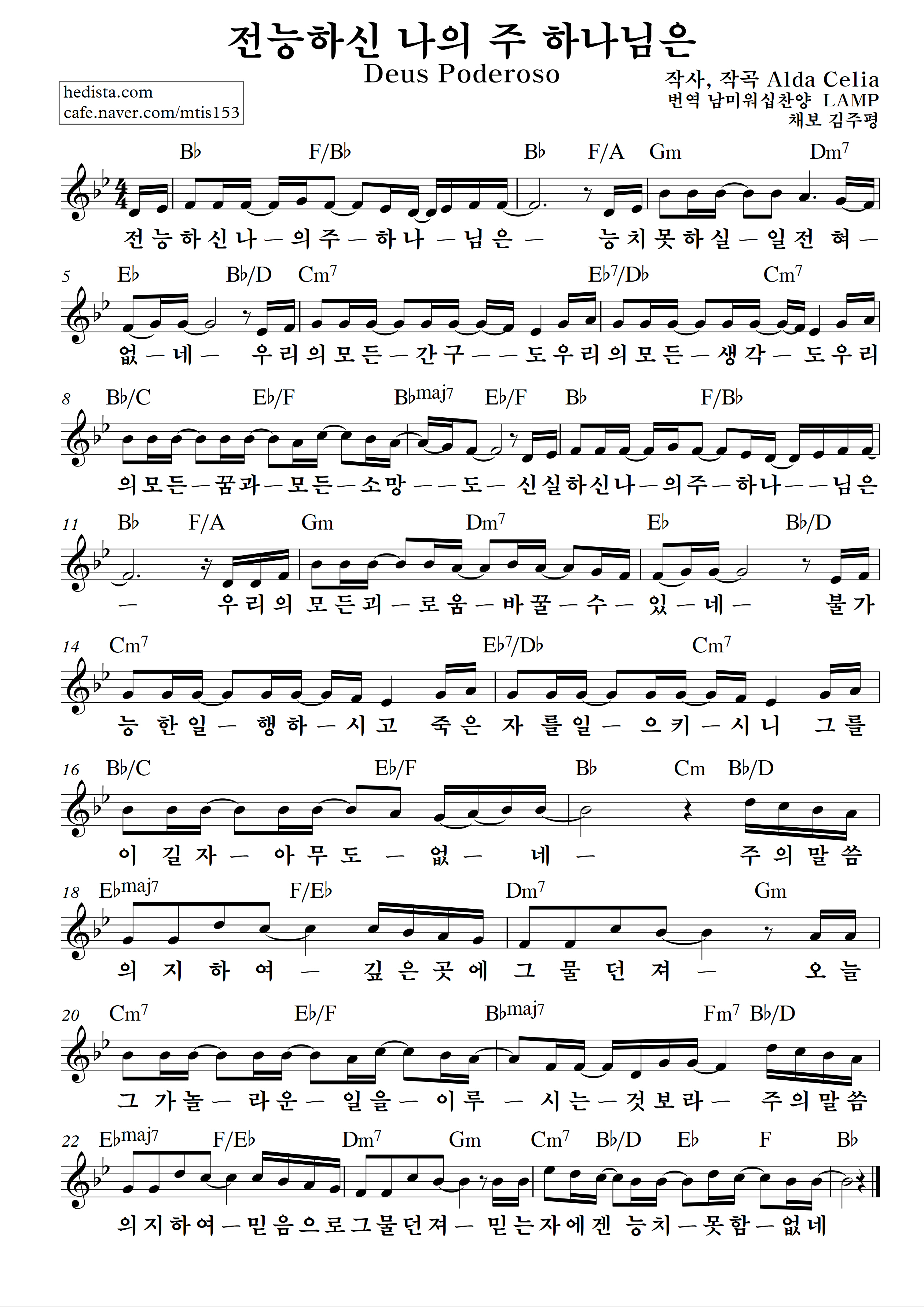 원곡은  'ALDA CELIA' 작사 작곡의 'Deus Poderoso' 입니다.