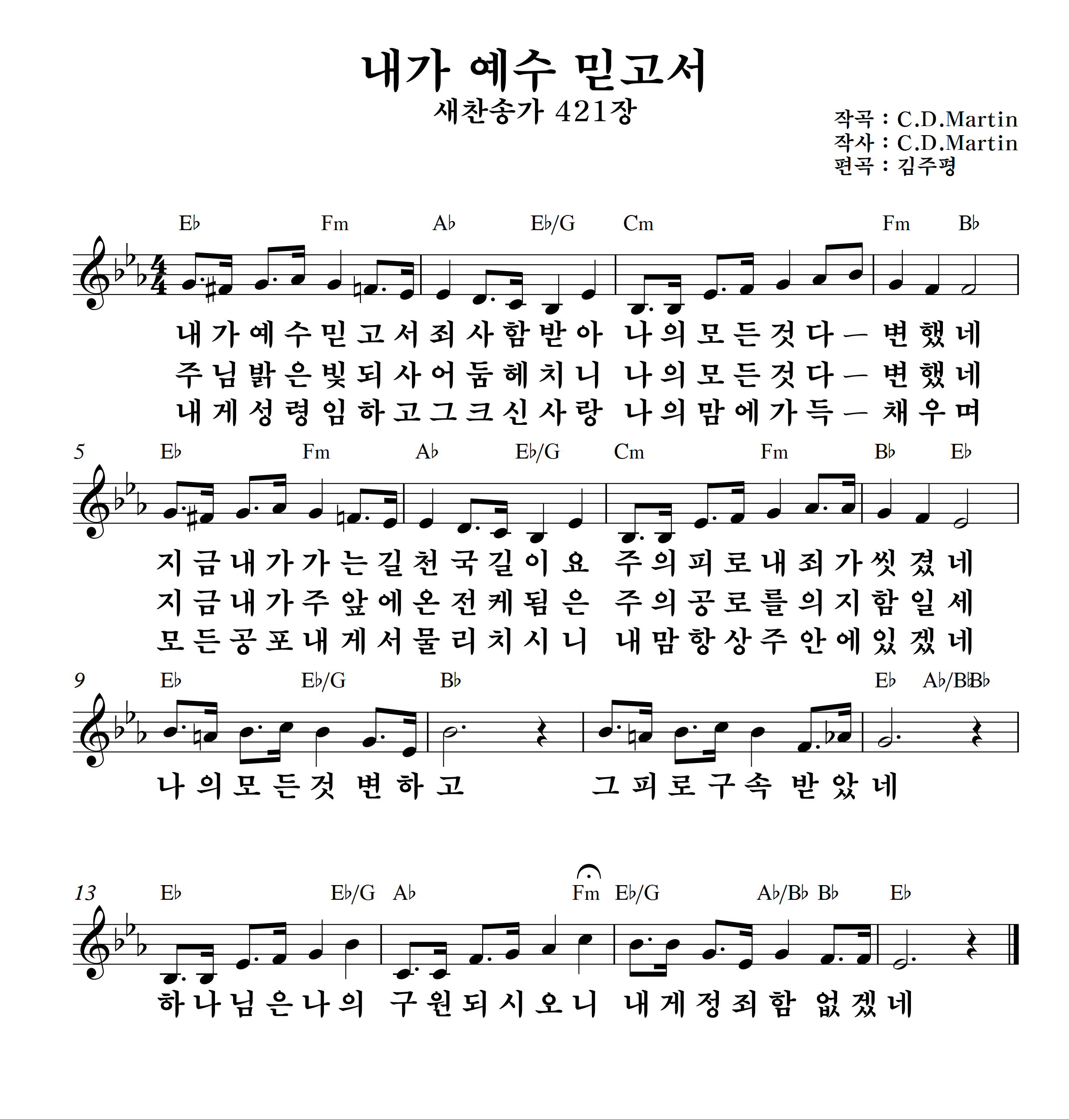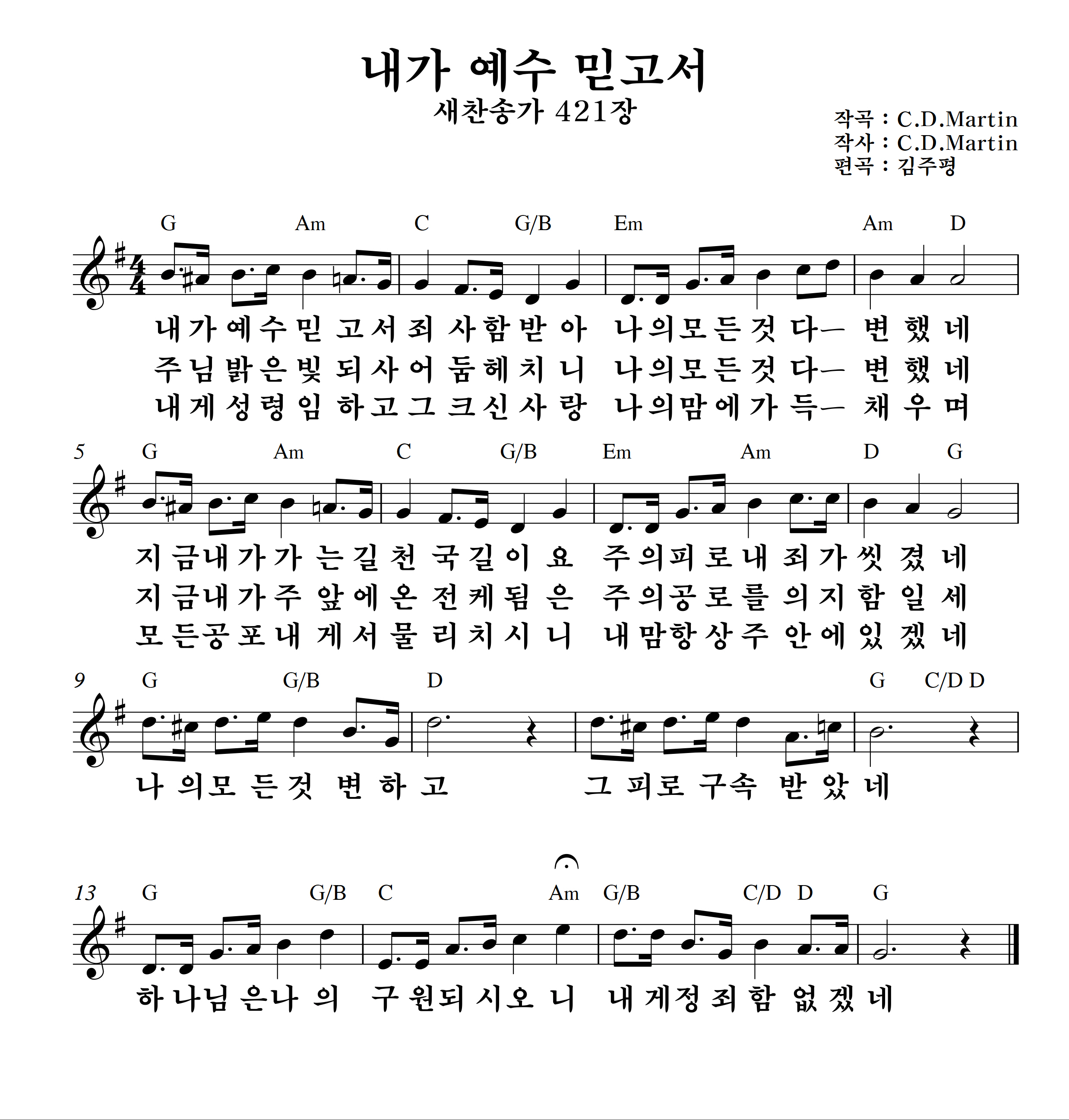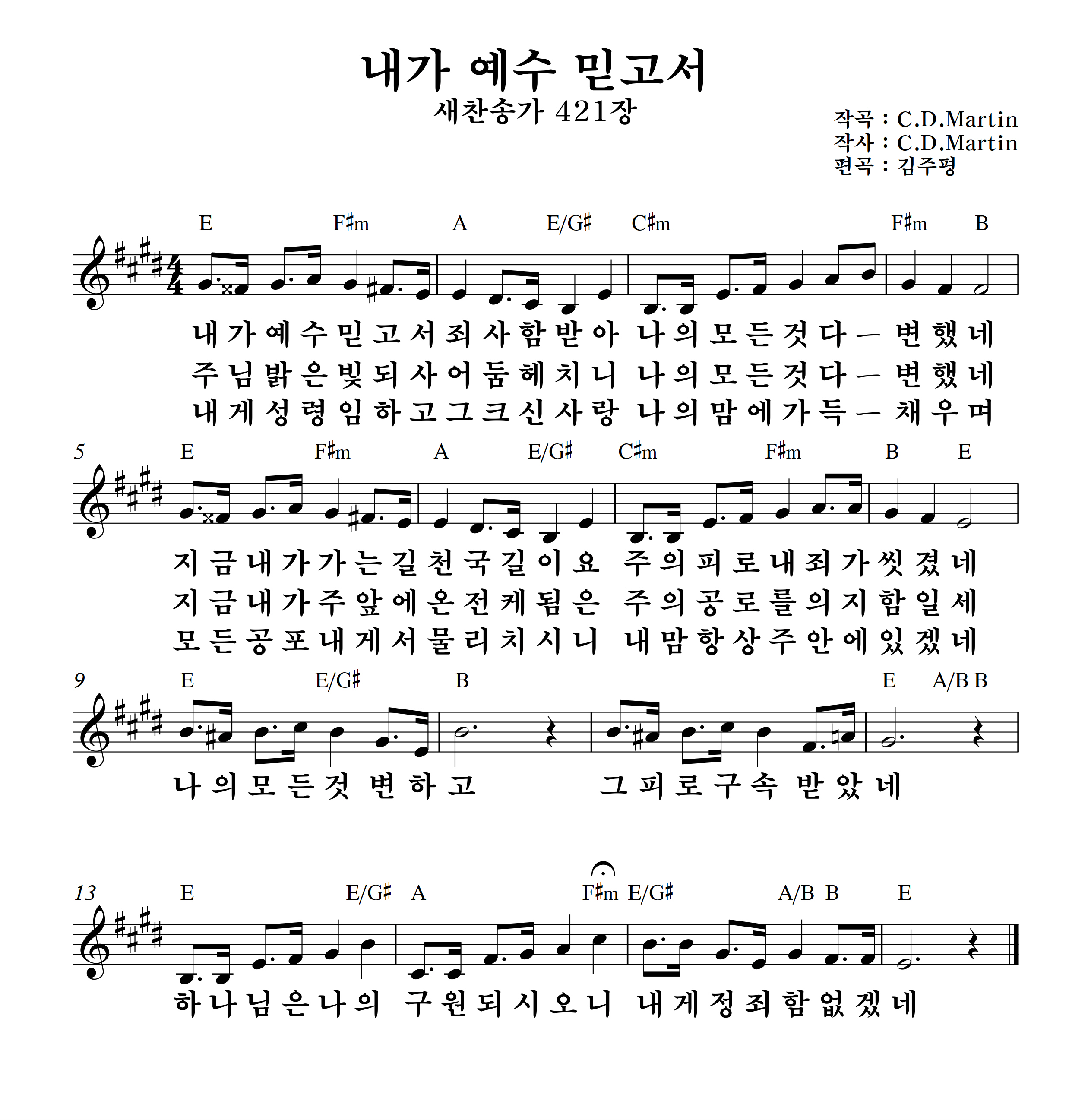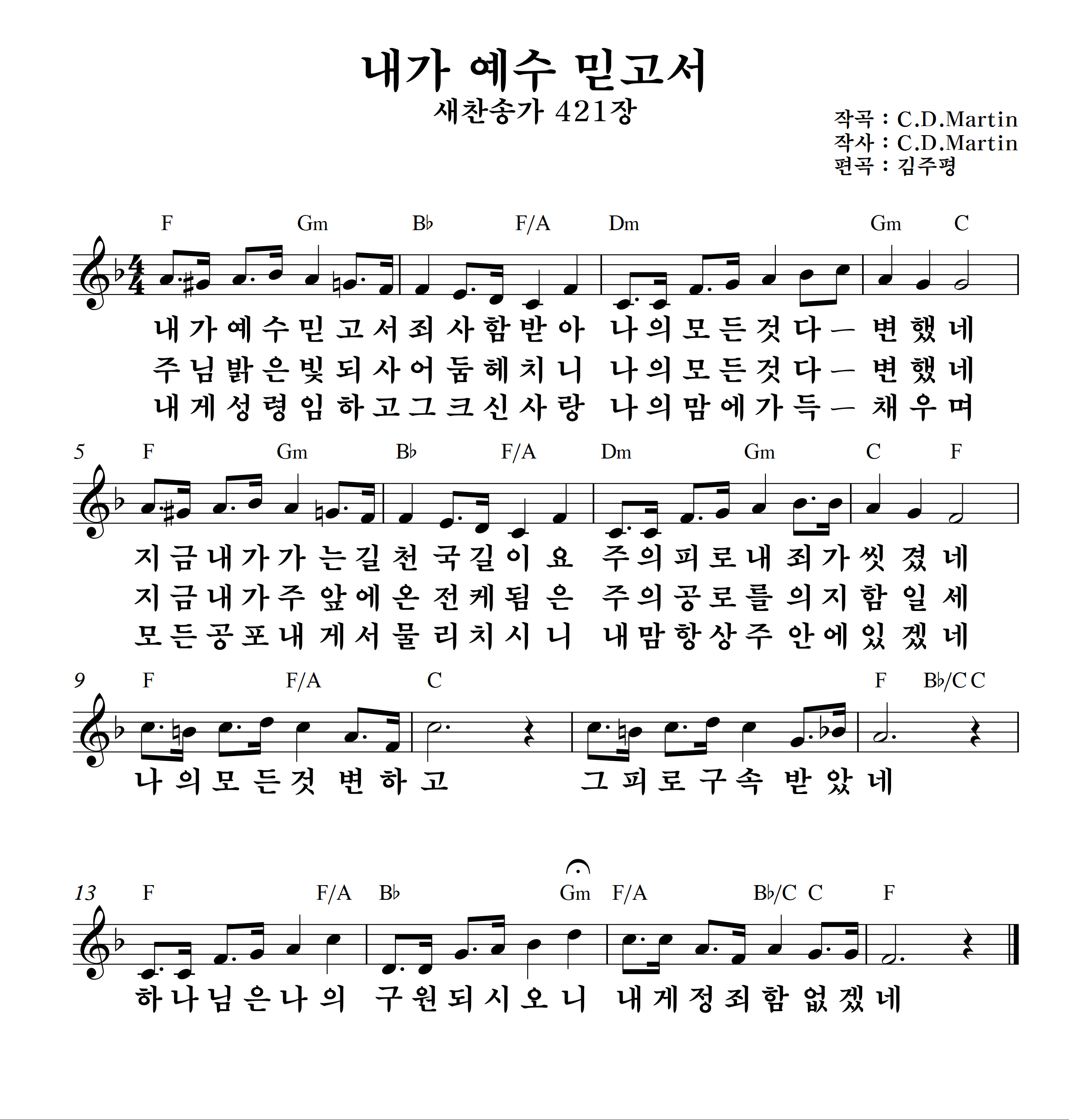 '내가 예수 믿고서'의 악보입니다.