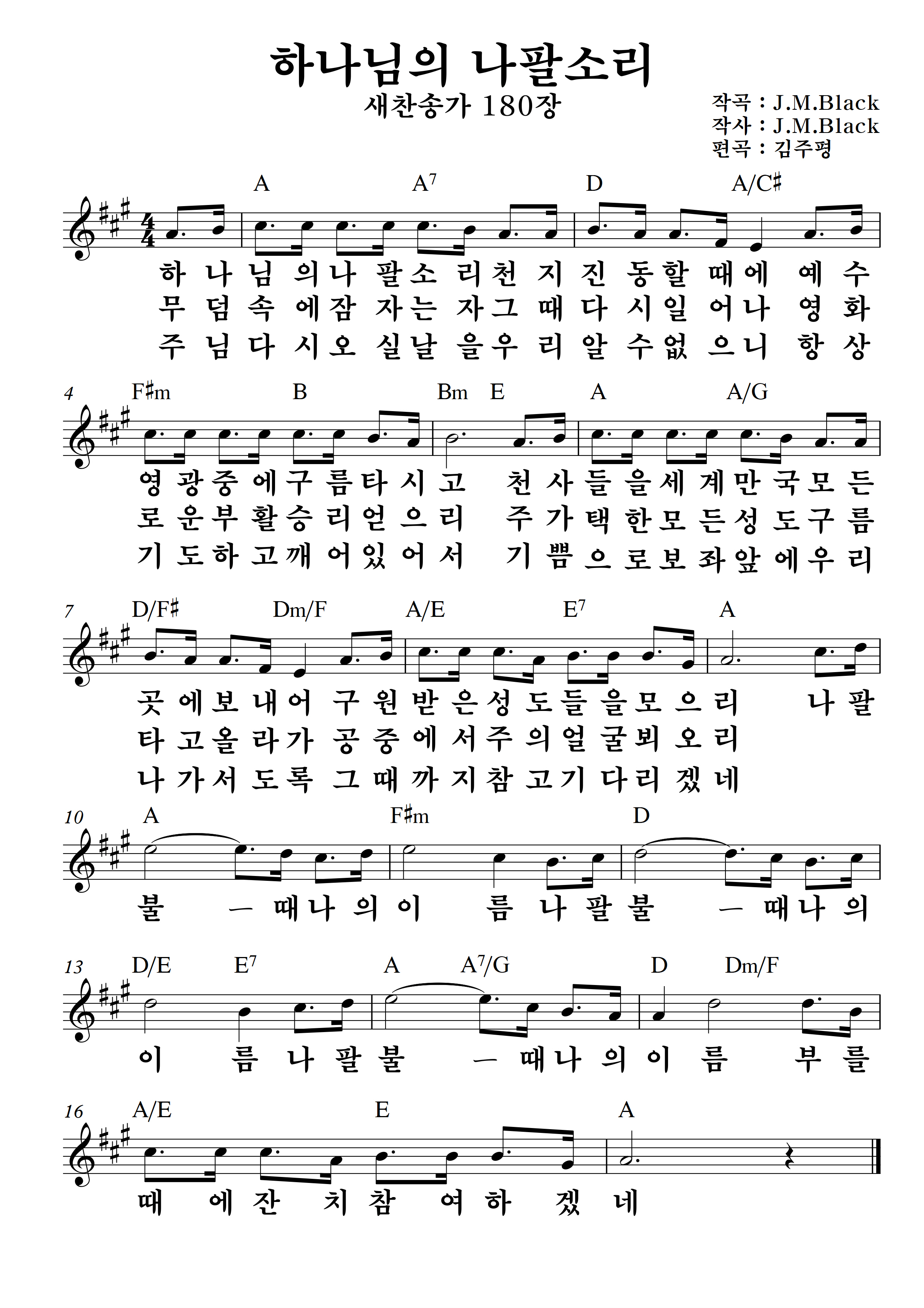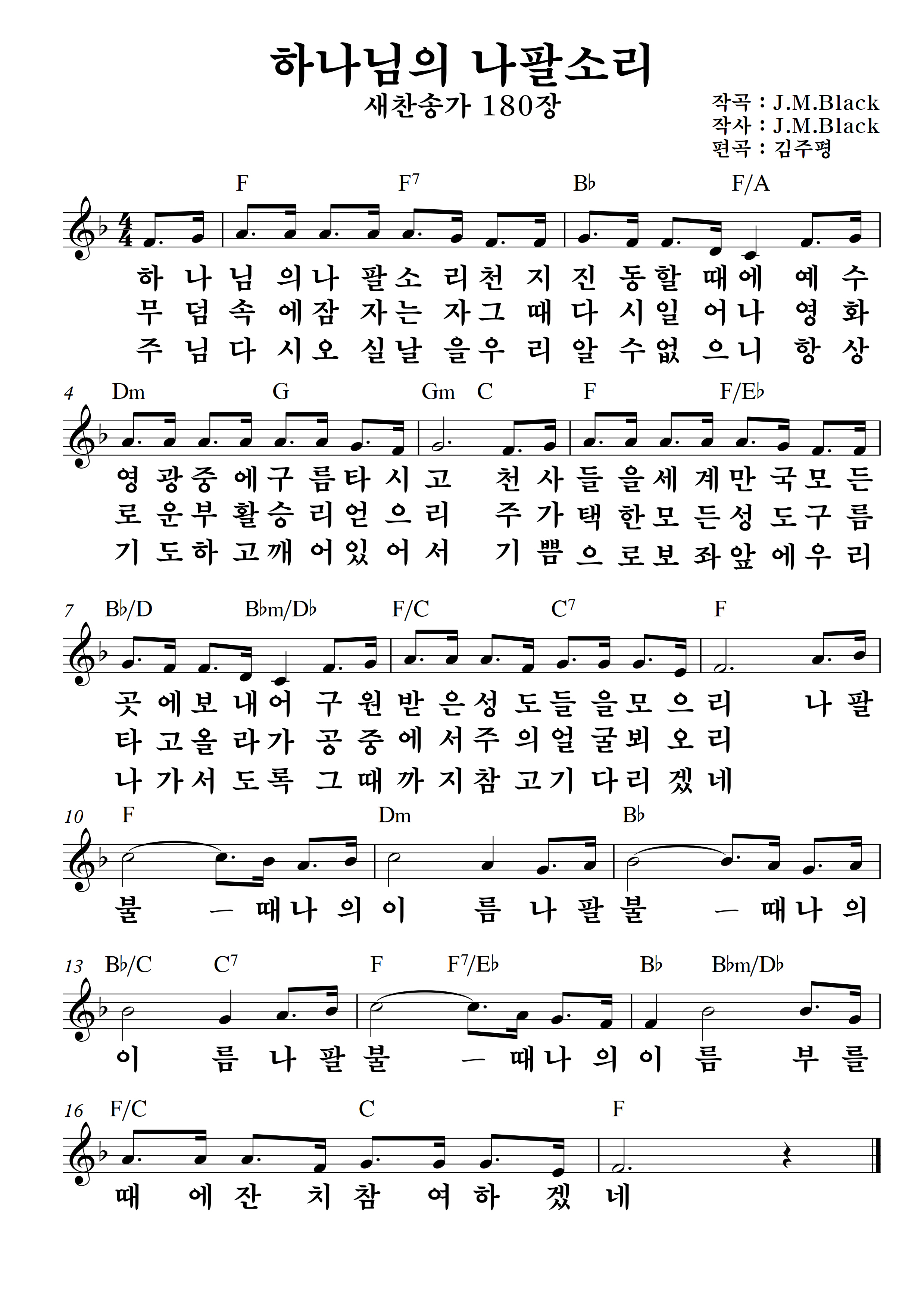 하나님의 나팔소리 (찬송가 180장) [F,G,A key] 악보