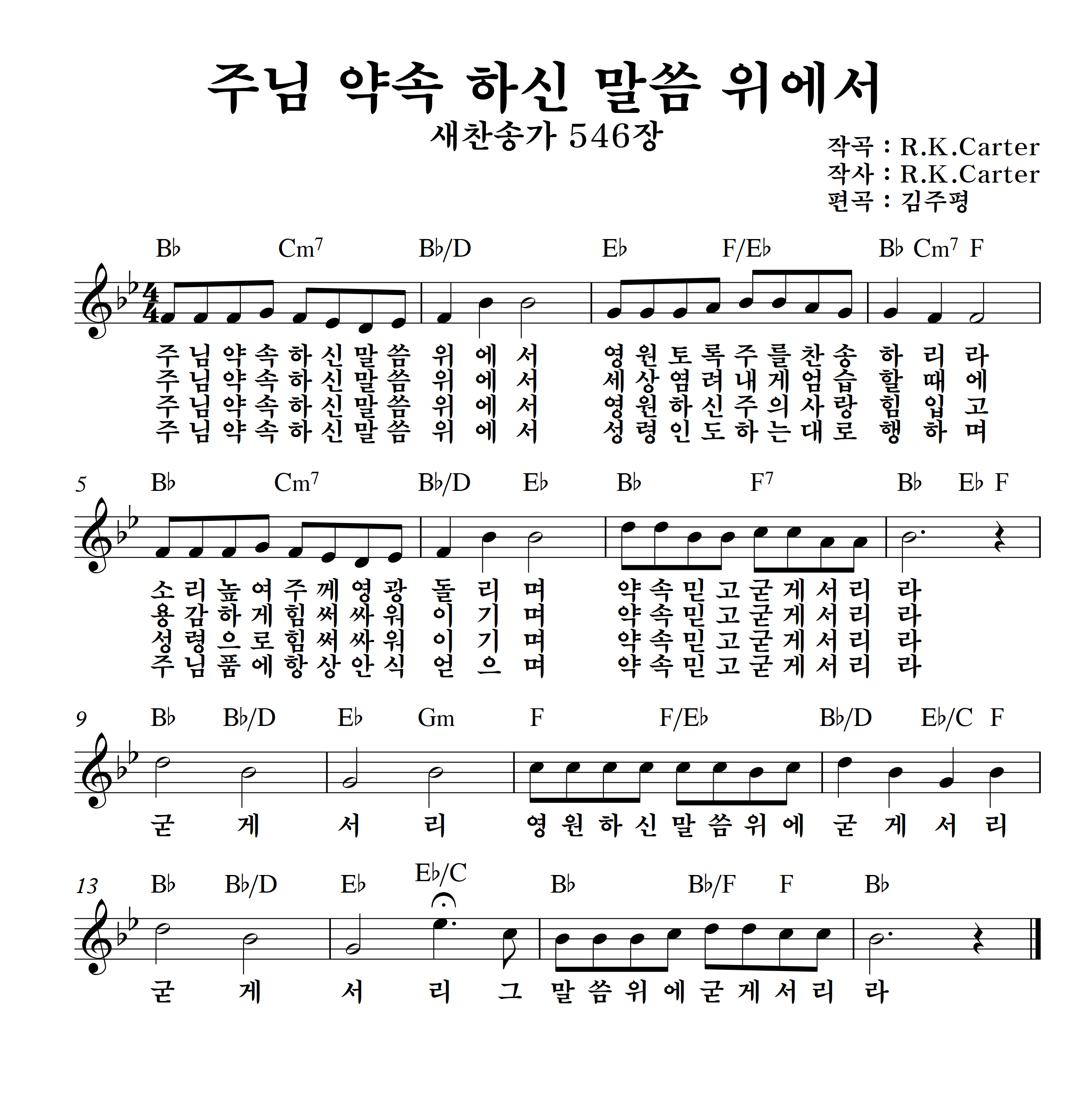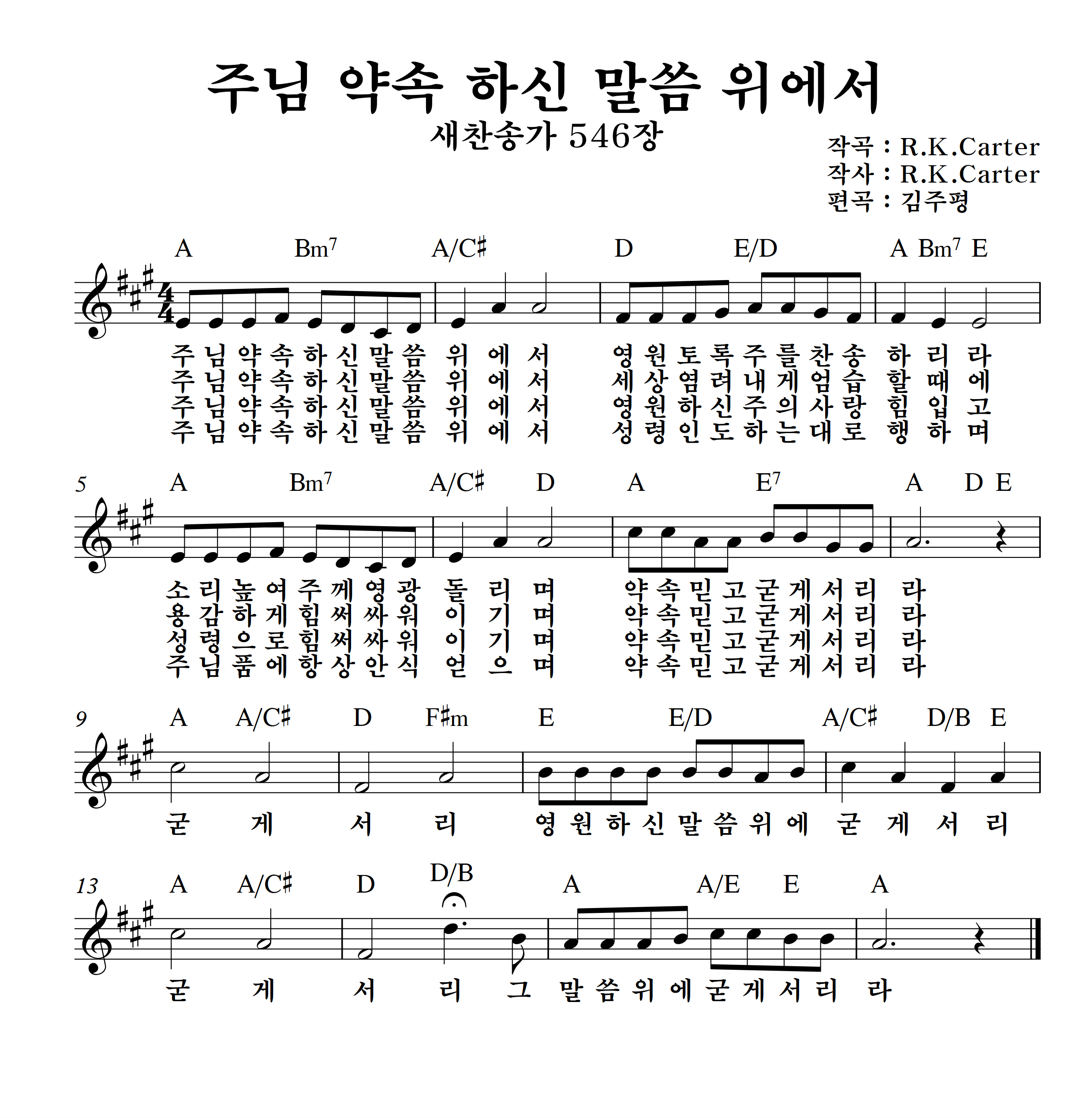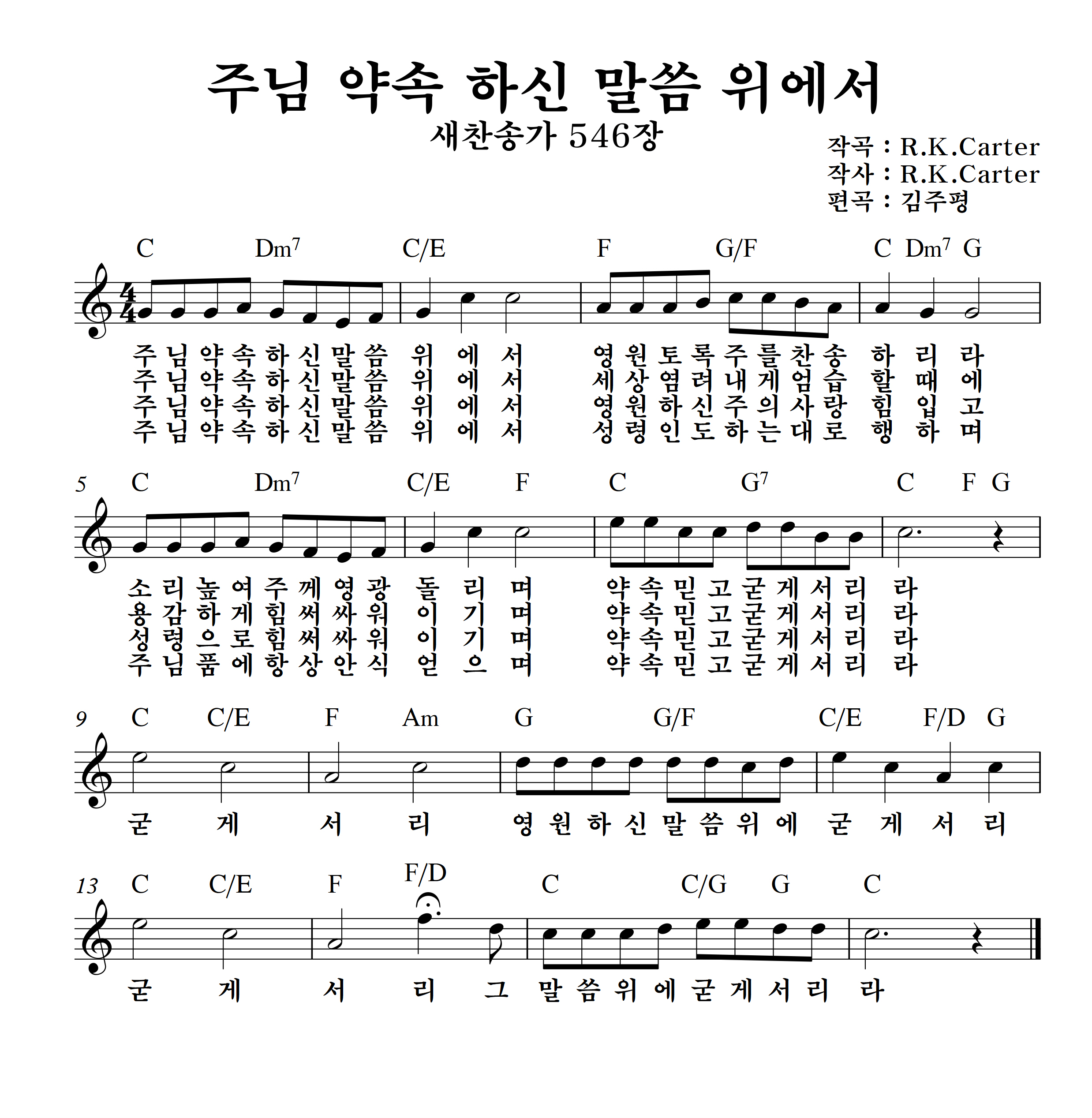 주님 약속 하신 말씀 위에서 편곡악보입니다.