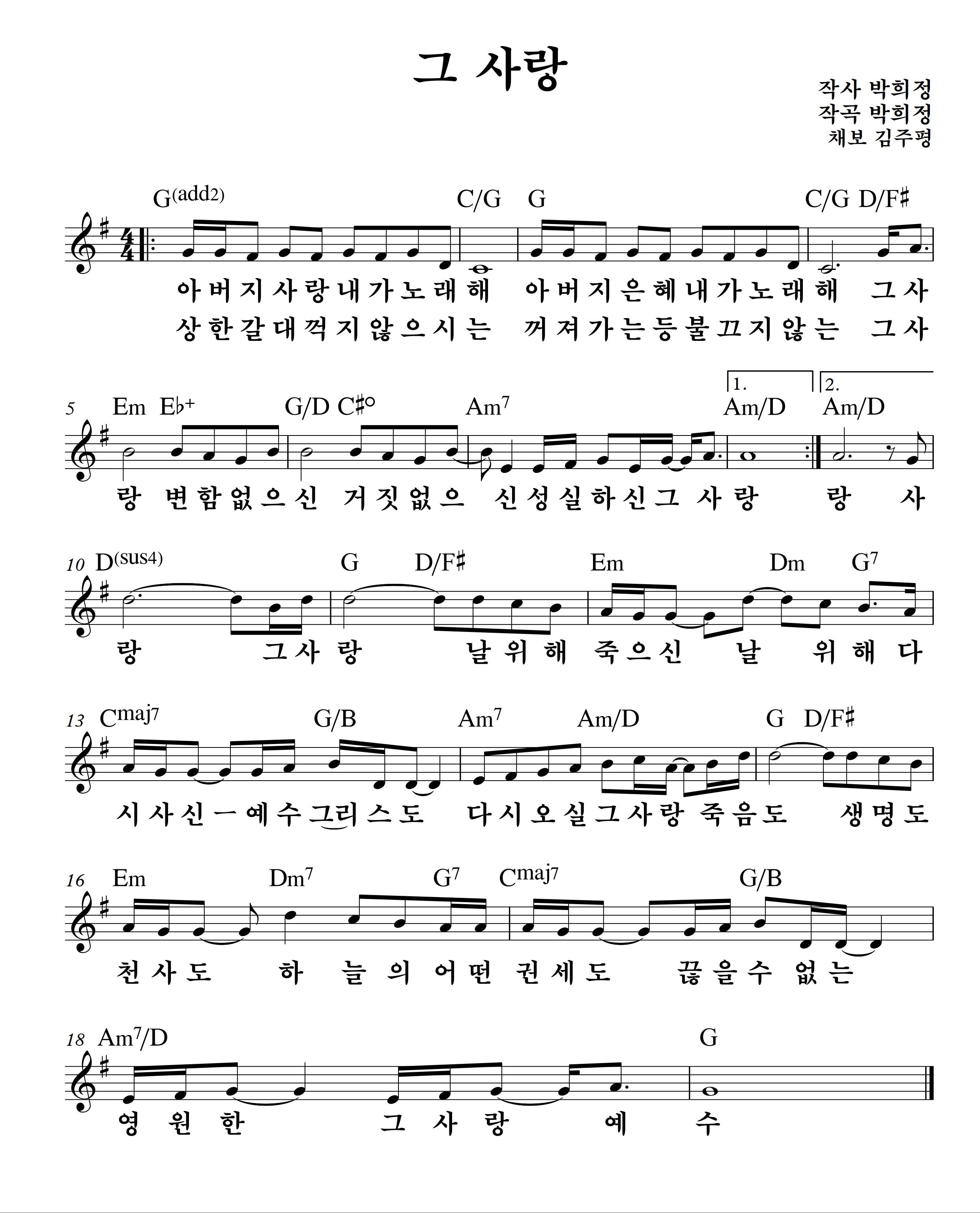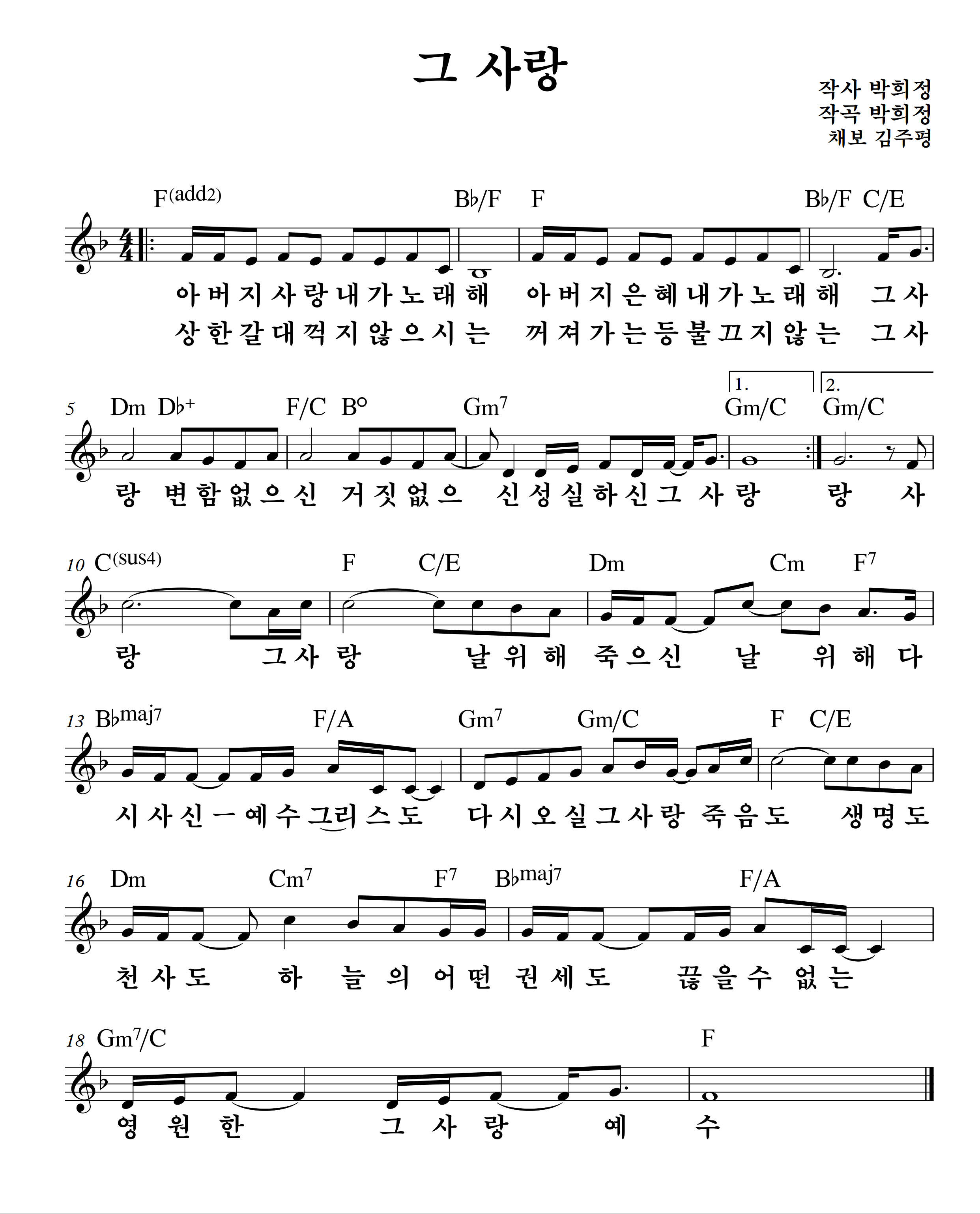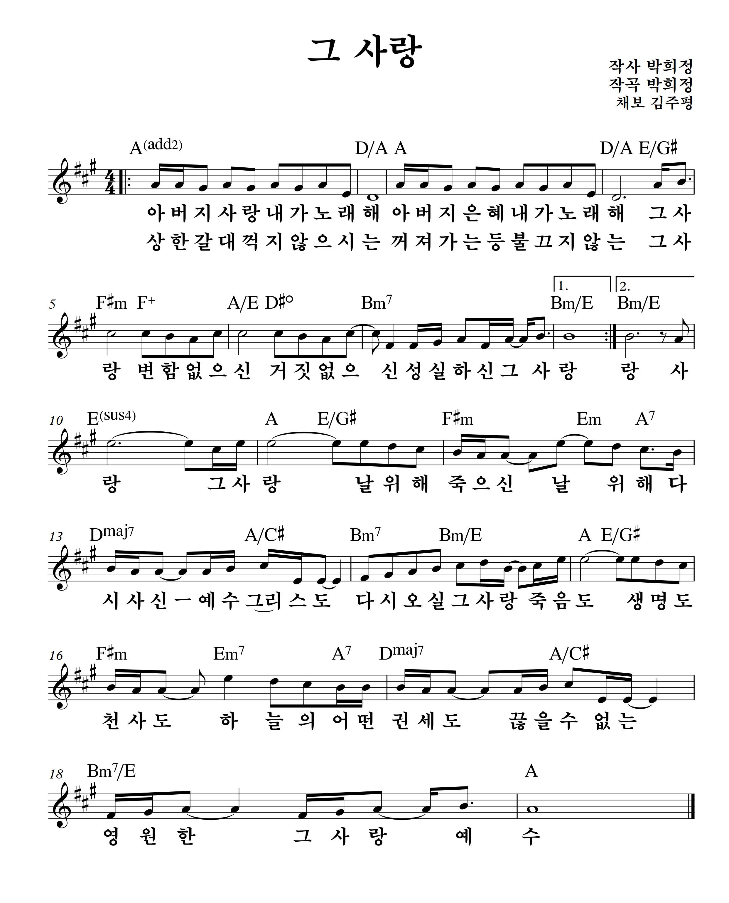 그 사랑 [E,F,G,A key] 악보