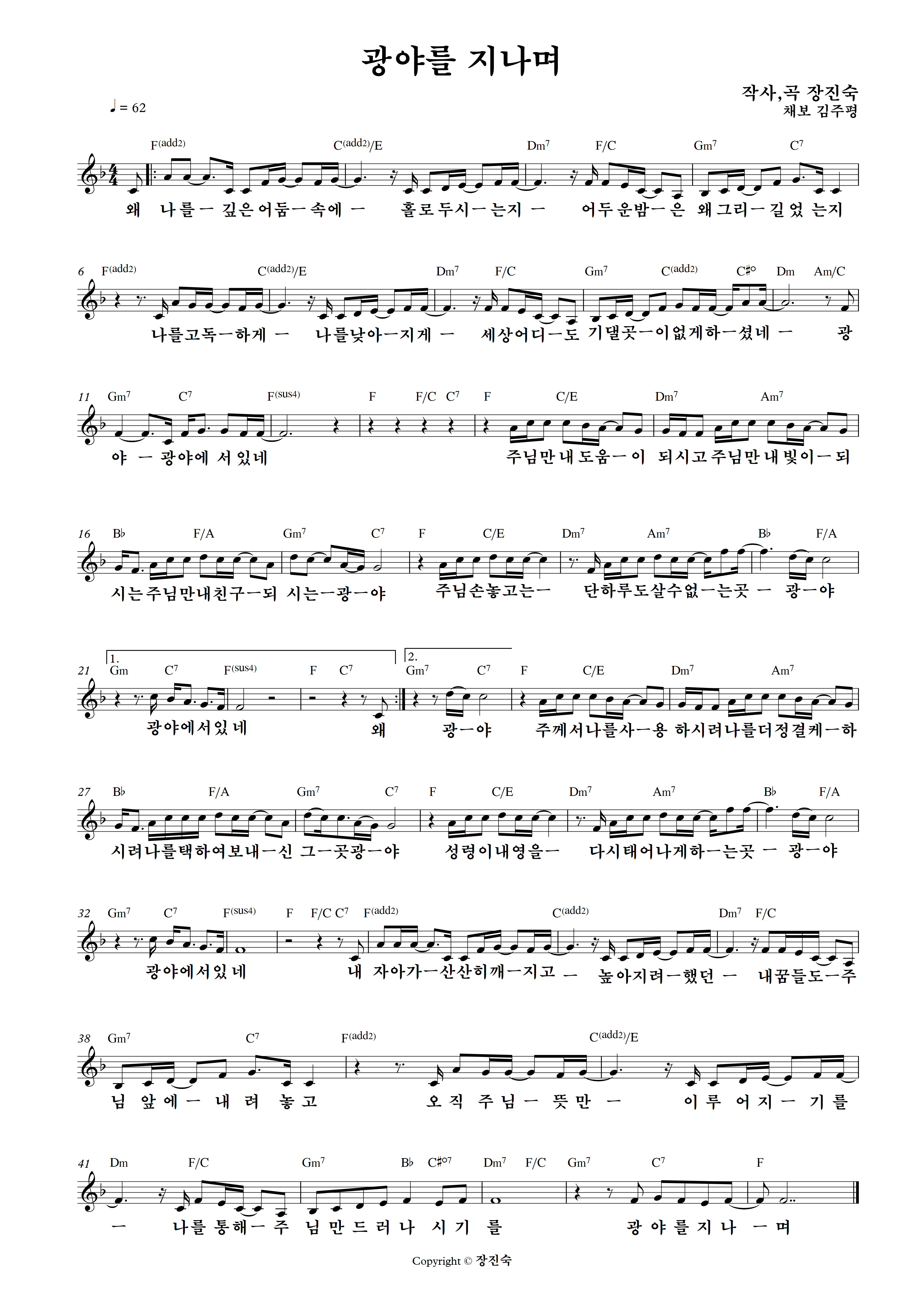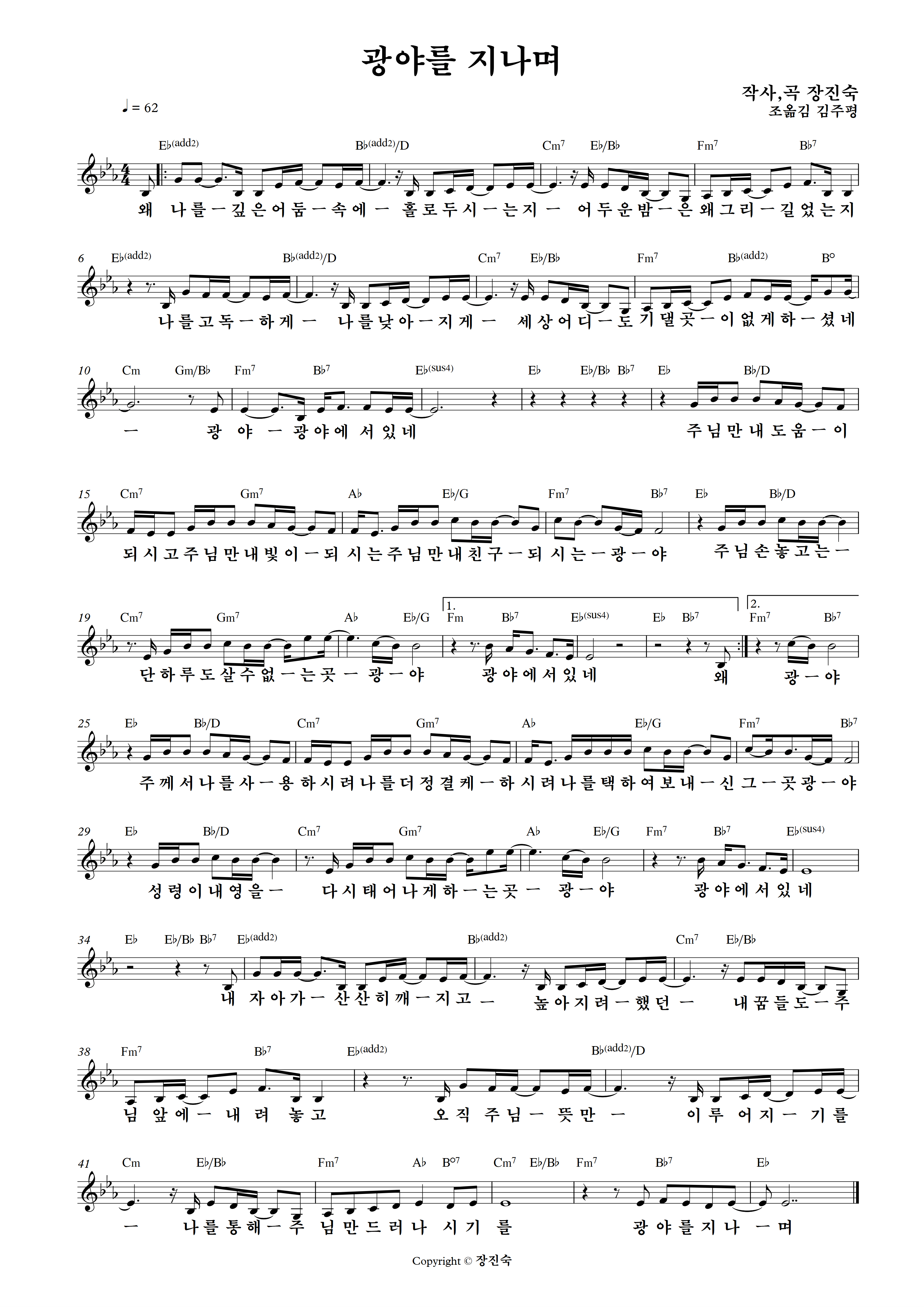 오늘 나눌 악보는 히즈윌의 '광야를 지나며'입니다.