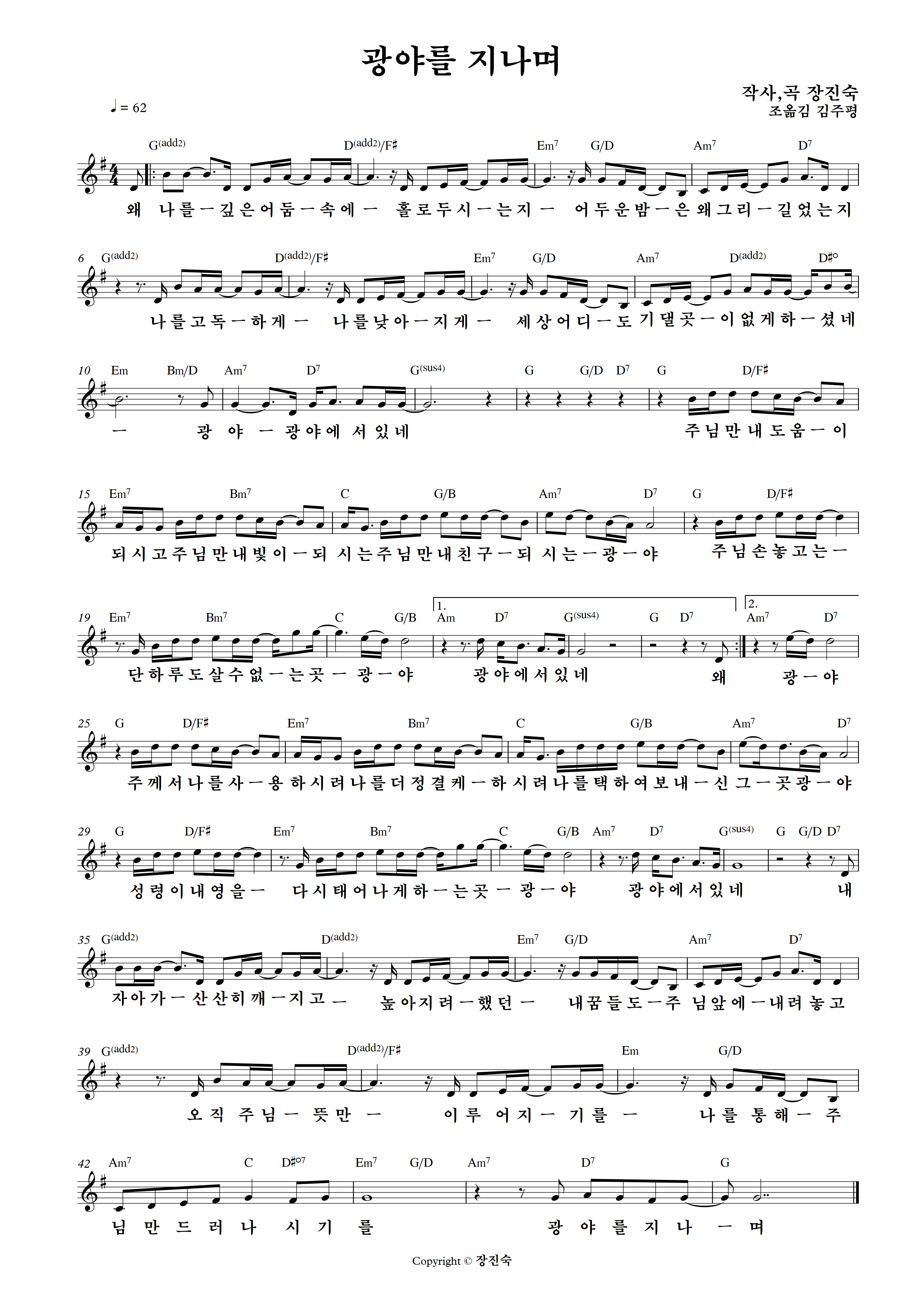 오늘 나눌 악보는 히즈윌의 '광야를 지나며'입니다.