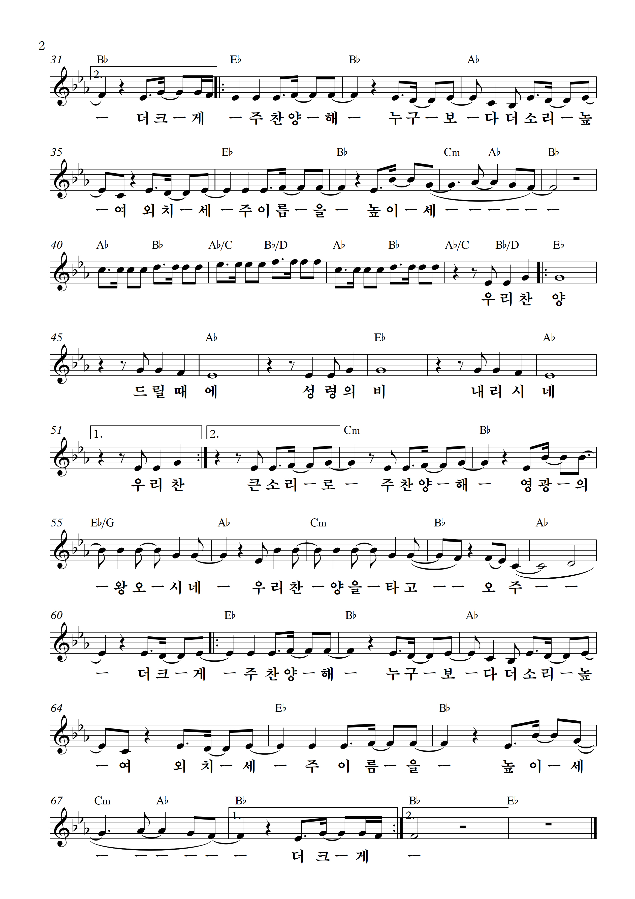 개인적으로 이 곡이 회중예배에서 E키와 Eb키로 불려지기는 상당히 어렵다고 생각합니다.