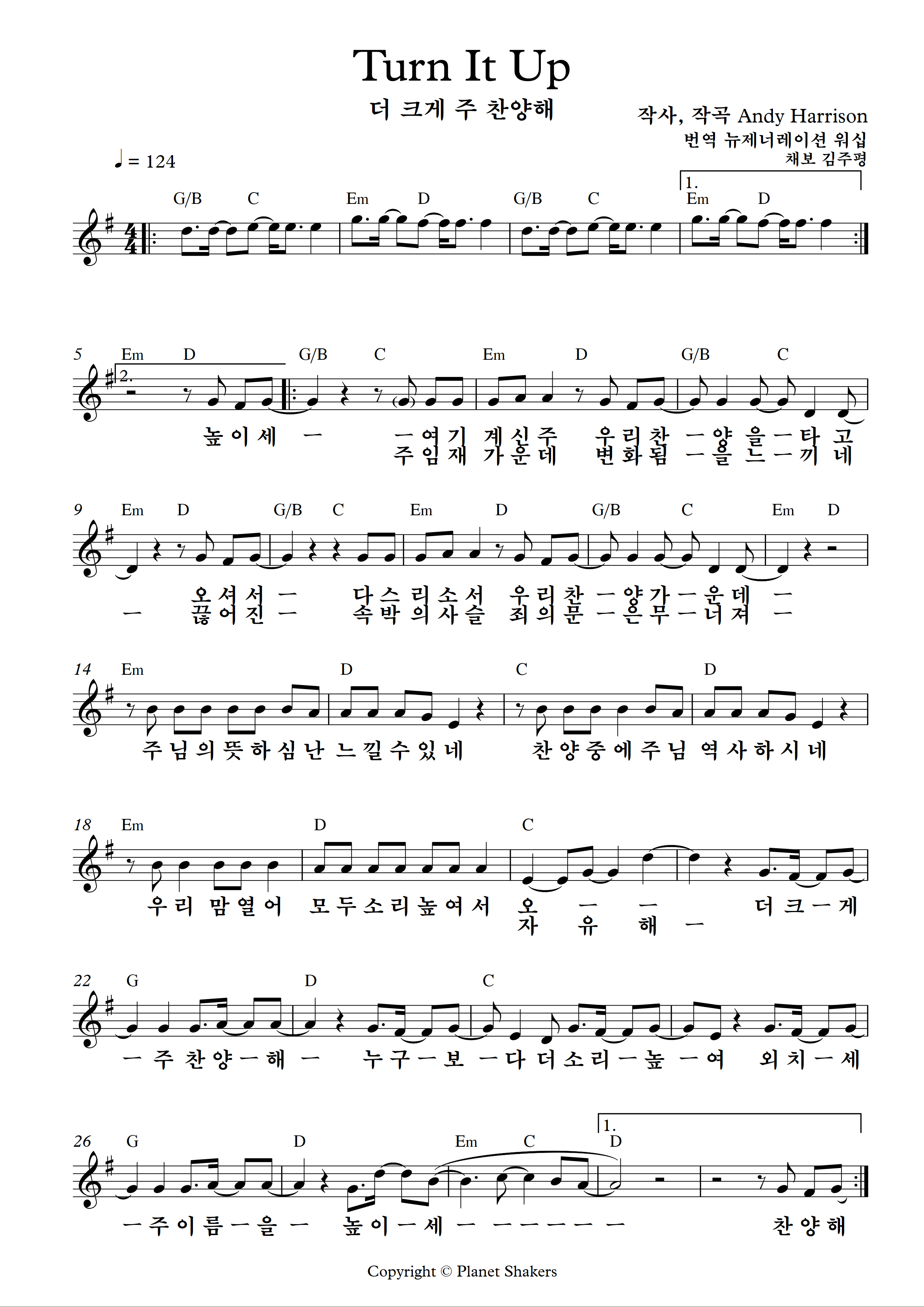 | Turn It Up - 더 크게 주 찬양해 악보 [E, Eb, D, C key] (0) | 2023.12.30 |