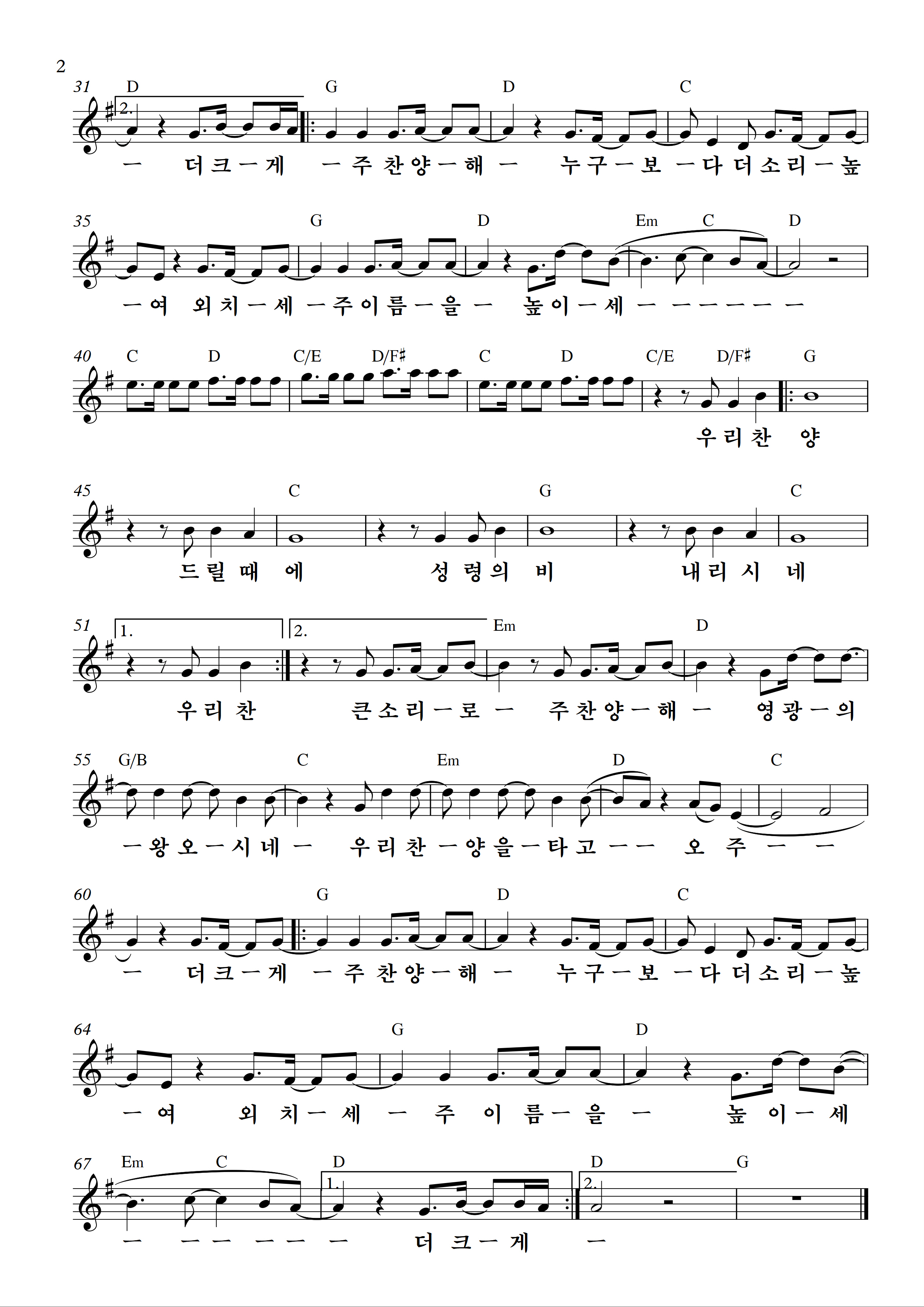 저는 아이들과 싱어들의 음역을 고려하여 D키로 이번 여름 사역 간 활용했는데,