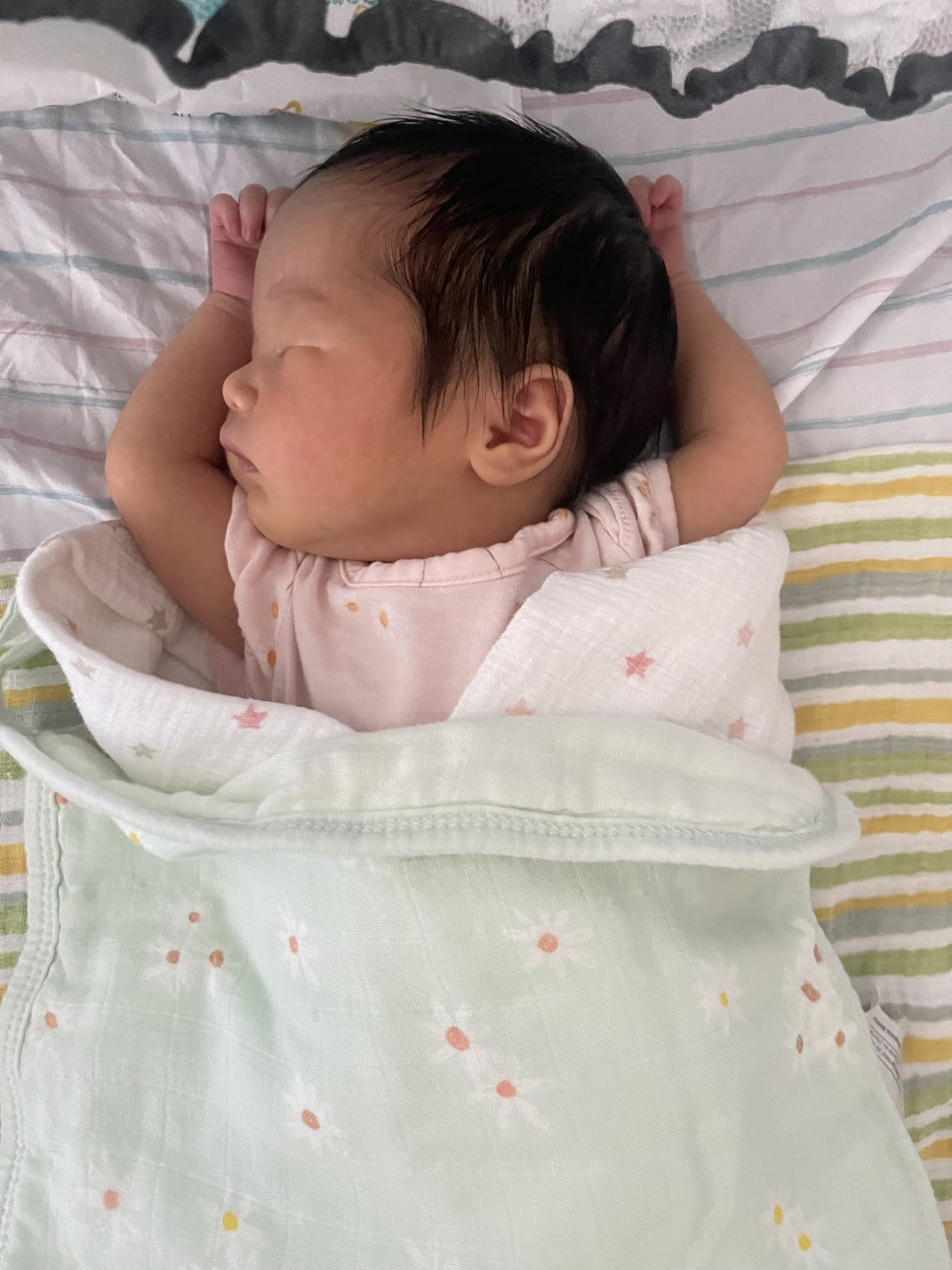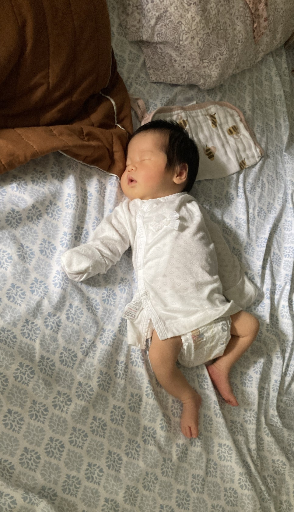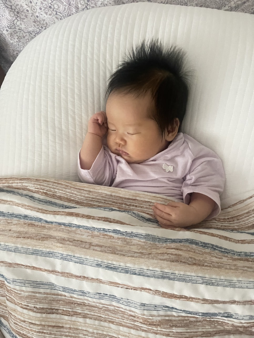 She was born in the U.S. and is an American citizen. Although we don't know how long she will stay in the U.S., we decided she would need an English name. I initially suggested "Mayweather," inspired by the undefeated boxer, with the hope that Suheun would grow to be a strong fighter in life. However, I was more drawn to the name's meaning, "May weather," symbolizing warmth and resilience—qualities I hoped she would embody. Moreover, her original due date was May 10th, making the name even more fitting.