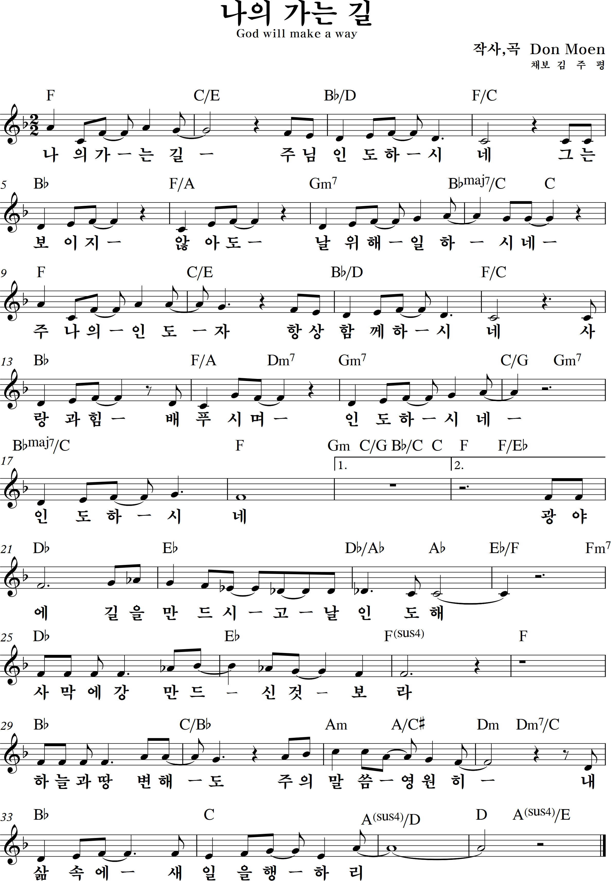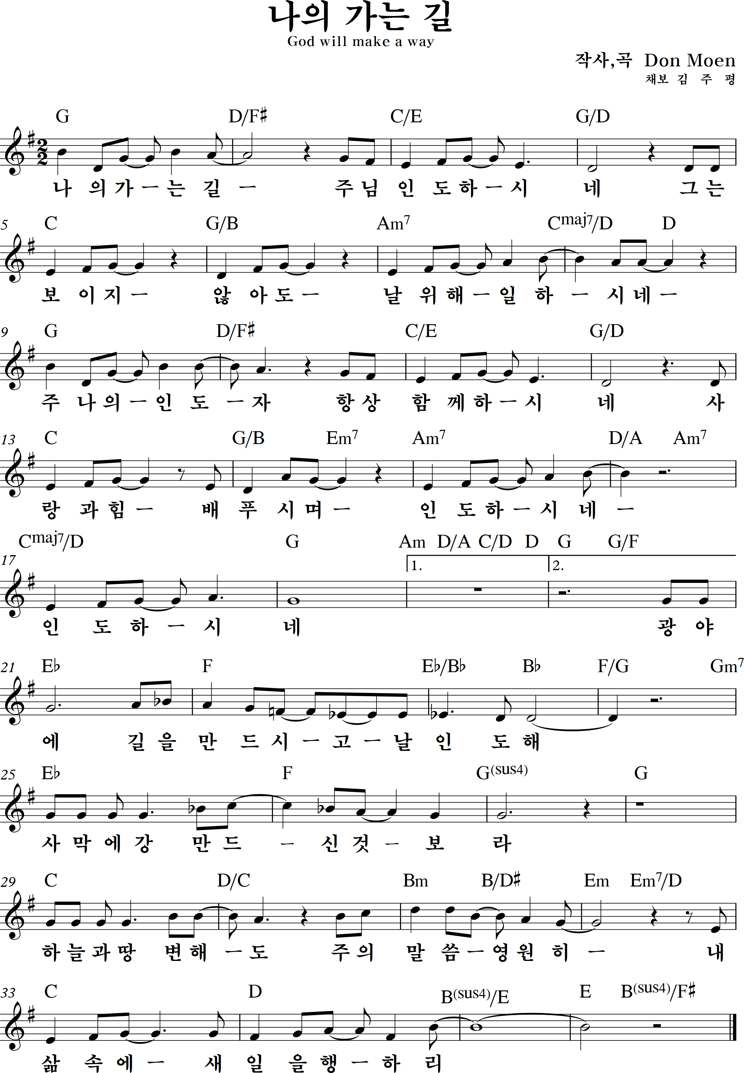 God will make a way (나의 가는 길)의 악보입니다.