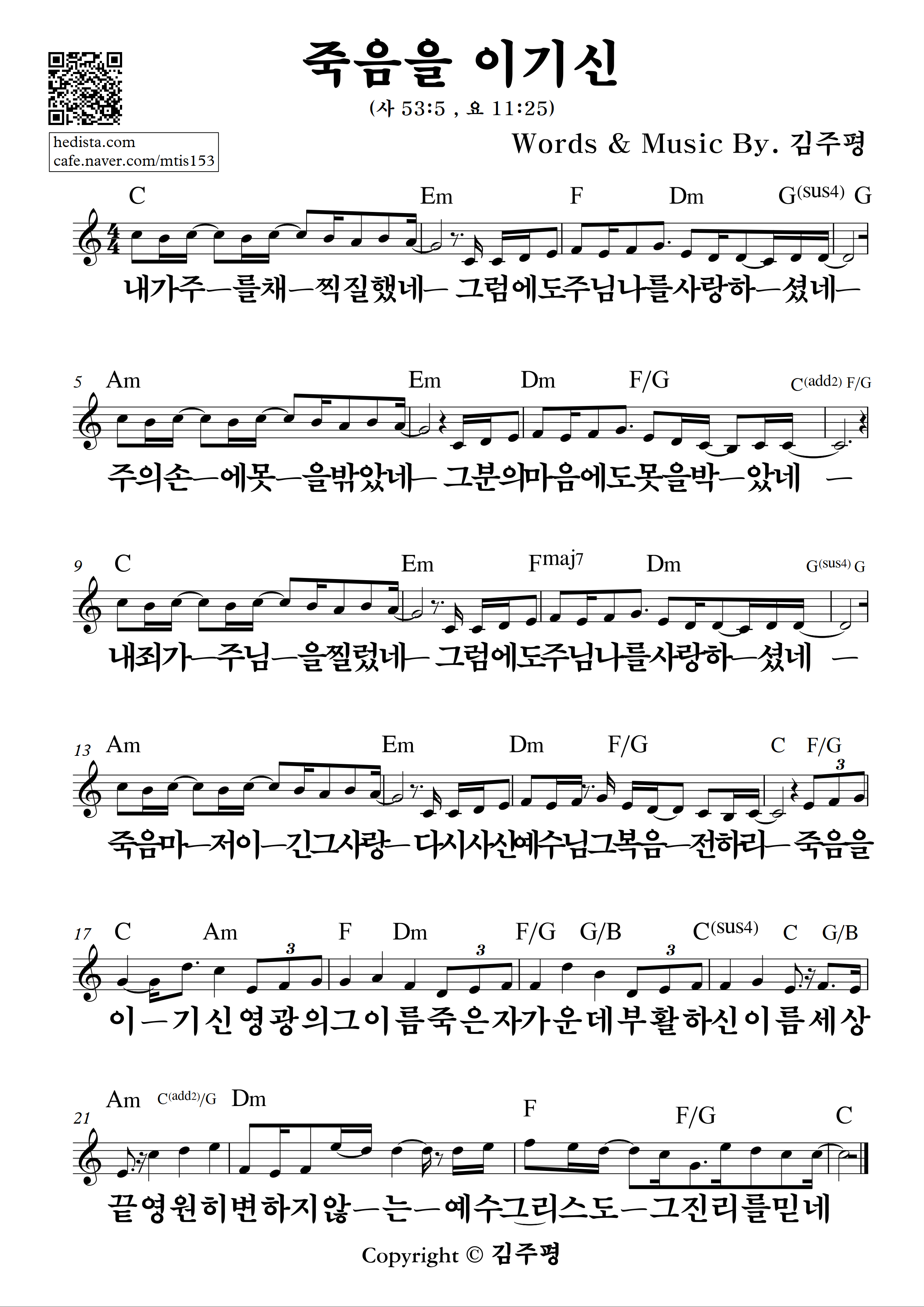 죽음을 이기신 [A, Bb, B, C key 악보]