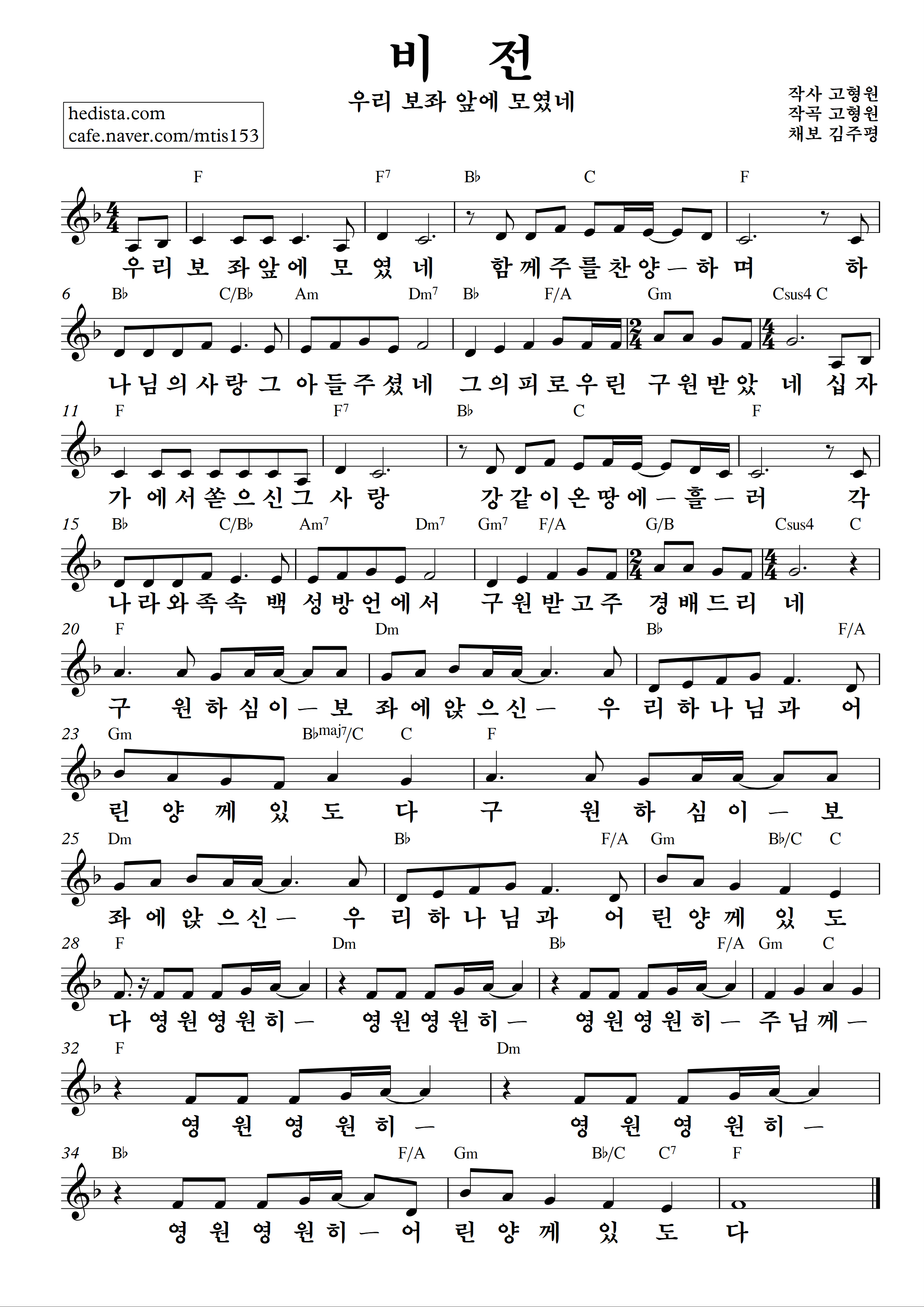 비전 (우리 보좌앞에 모였네) [F/G/A key 악보]