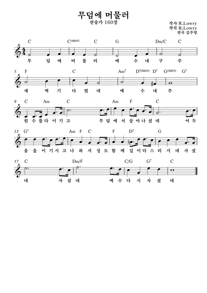 무덤에 머물러 (찬송가 160장) [G,A,Bb,C key] 악보 (부활주일 찬송)