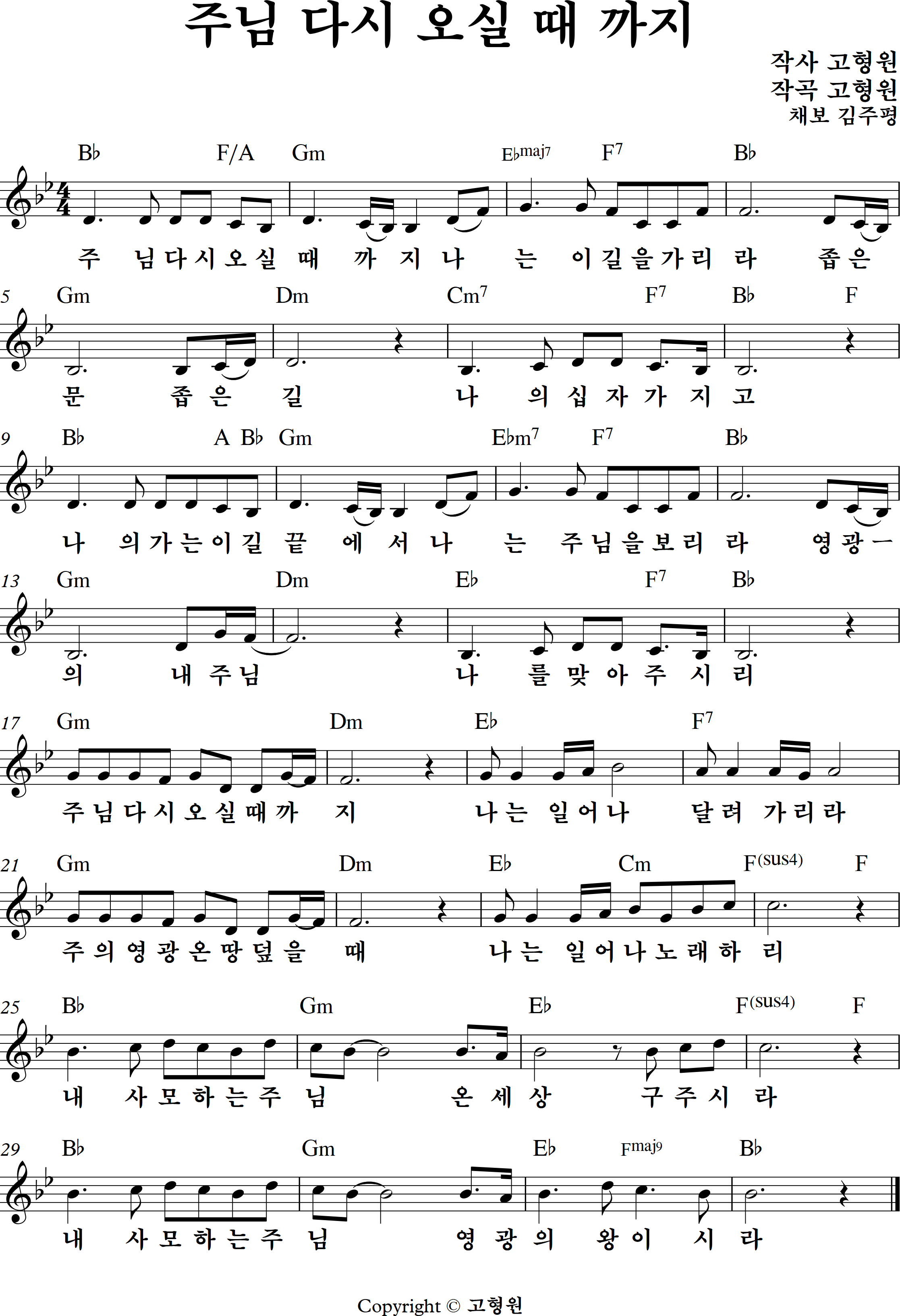 주님 다시 오실 때 까지 악보 - 다양한 키 (C,G,A,B,Bb,D)